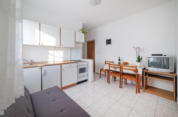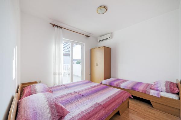 Plně vybavené apartmány, 1. patro rodinného domu, v klidnější části Vodice. Na hlavní pláž dojdete za 5 minut, do centra města za 10 minut. Pláž nabízí spoustu obsahu ze sportu a rekreace, zábavy a spoustu obsahu pro děti. Obchod se nachází v přízemí stejného domu. Čerpací stanice, restaurace, kavárny a další zařízení jsou na dosah ruky, tj. Nepotřebujete auto, abyste se obešli.