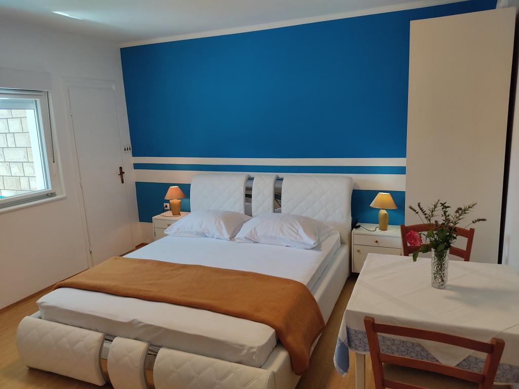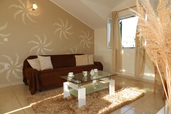 Apartmány jsou situovány v klidné ulici, dvě minuty chůze na pláž a méně než pět minut chůze od centra města. Díky skvělému umístění jsou apartmány velmi vhodné pro rodiny s malými dětmi. Všechny naše apartmány jsou čisté a pohodlné, mají balkon nebo terasu, jsou vybaveny klimatizací, vysokorychlostním připojením k internetu a satelitní TV. Na terase, která je pokryta vinnou révou je velký gril a je k dispozici všem našim hostům. Každý apartmán má vlastní parkovací místo ve dvoře. Cena pronájmů apartmánů závisí na délce a období pobytu. Nabízíme také slevy pro dlouhodobé pobyty.
