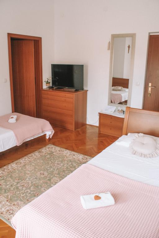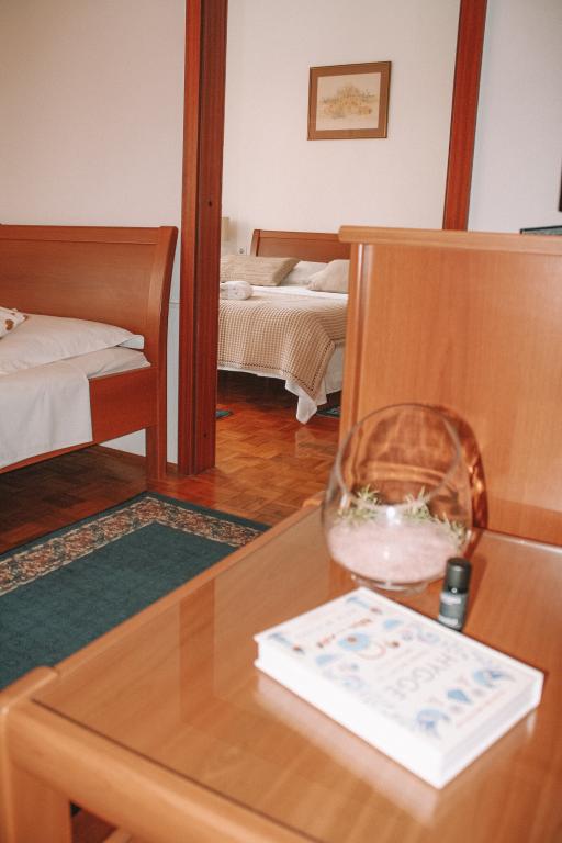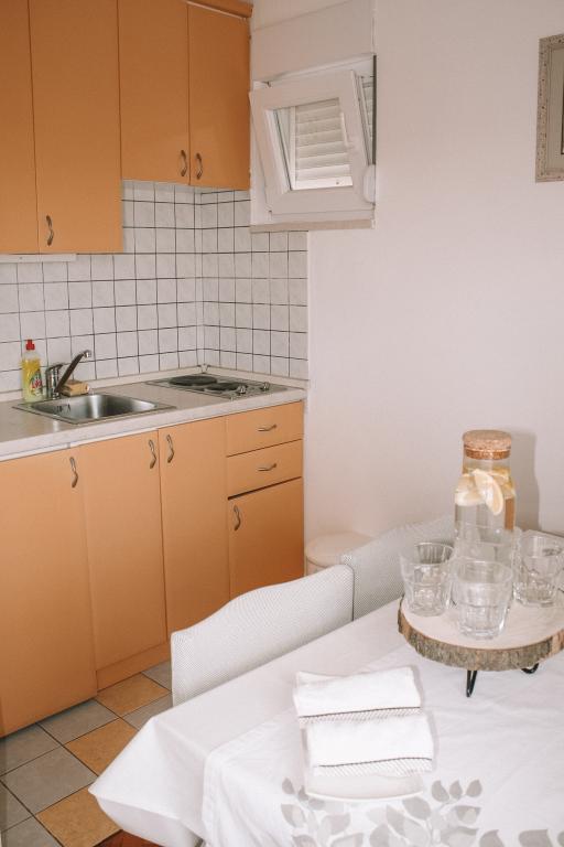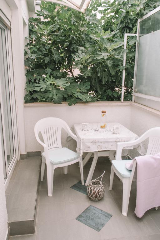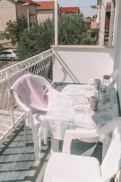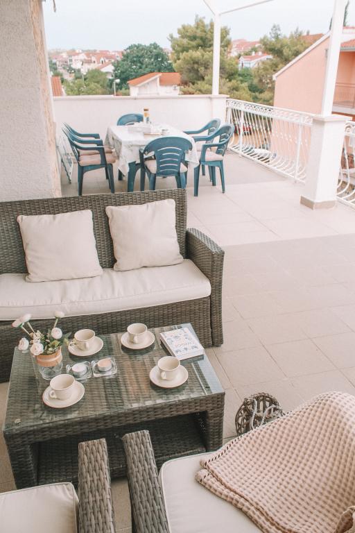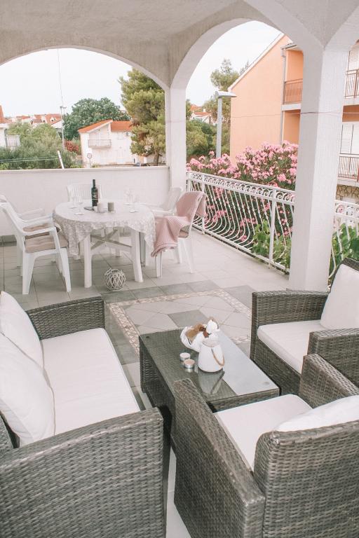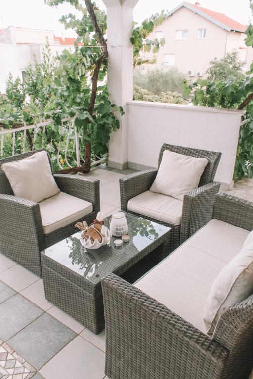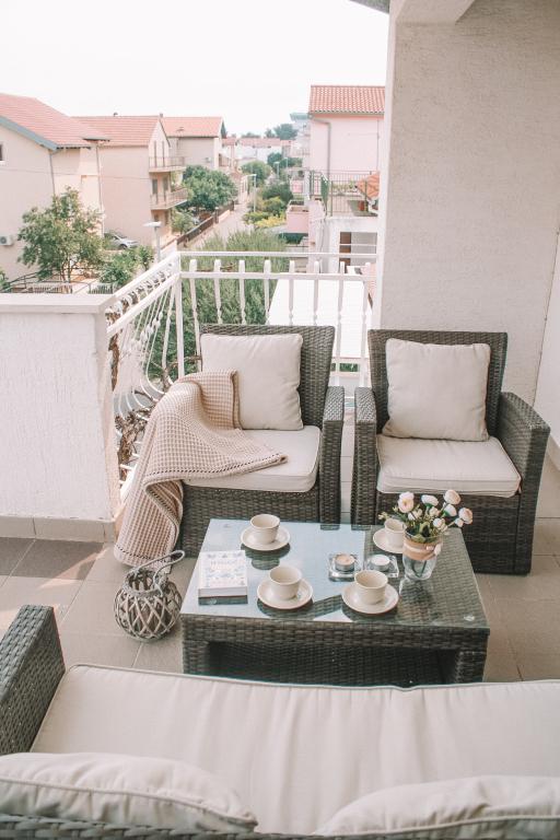 Apartmány se nacházejí v klidné části Vodice. K objektu náleží velká terasa 25 m2, garáž, parkovací stání, velký zděný gril. Apartmány jsou prostorné, vybavené (TV-SAT, klimatizace, WIFI internet). Na dvoře jsme pro vás vytvořili voňavou zahradu se středomořskými bylinkami a v apartmánech samotných můžete relaxovat s osvěžujícími a uklidňujícími vůněmi organických esenciálních olejů z chorvatských rostlin. Naším posláním je, aby se každý z našich hostů cítil během pobytu uvolněně, pohodlně a šťastně. Na každého hosta čeká welcome drink a tradiční dort!