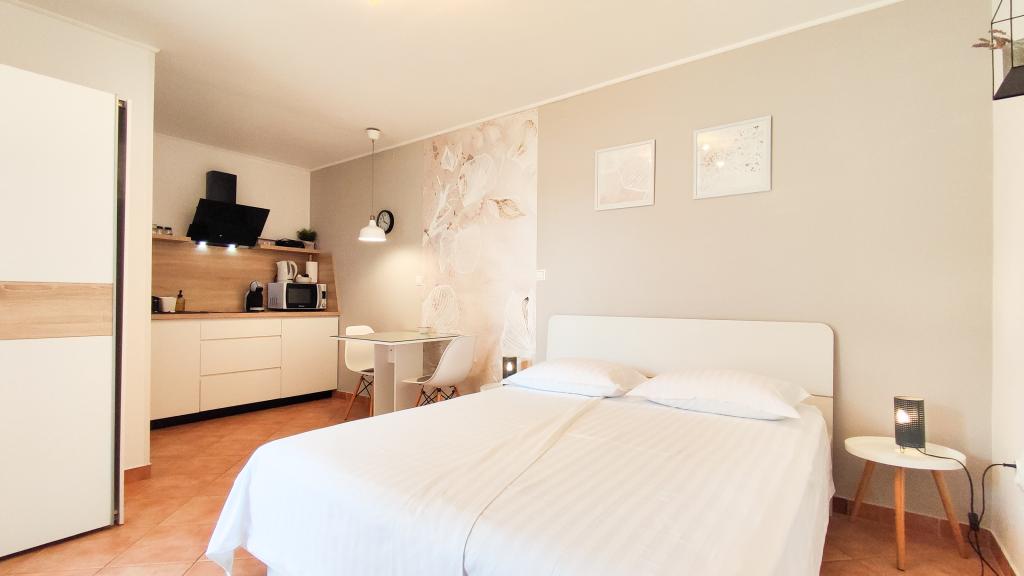 Zarezervovali jsme si A4 Deluxe. Byt je velmi prostorný a má vše, co potřebujete, abyste se cítili pohodlně. Majitel Marija je super milý. Rozmazlovali nás šťávou, vínem a čerstvě zoranými fíky. Toto ubytování mohu absolutně doporučit.