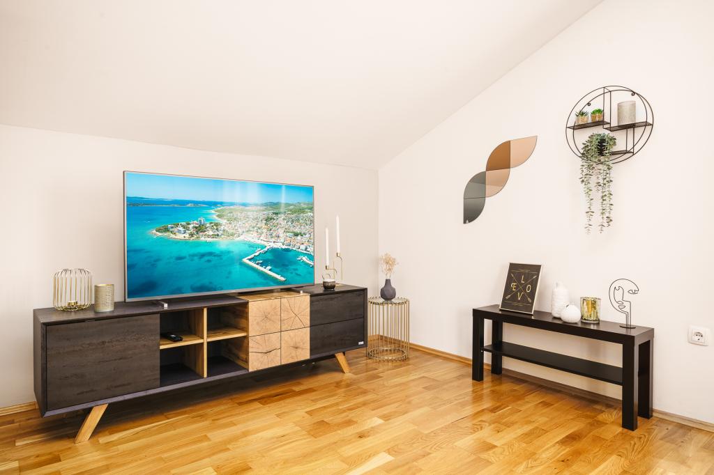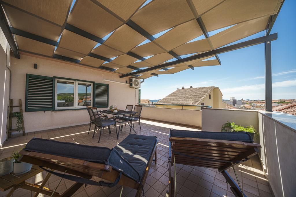 Vítejte v apartmánech Family Petrov! Nabízíme pohodlné ubytování v 5 moderně vybavených apartmánech, ideálních pro menší skupiny nebo větší rodiny, které si chtějí užít odpočinkovou dovolenou. Nacházejí se ve dvou rodinných domech s vlastními vchody, rozmístěných v přízemí a prvním patře. Každý apartmán má vlastní samostatný vchod a soukromou krytou terasu. Naše poloha je ideální - nacházíme se v klidné oblasti, daleko od hluku a dopravy, a přesto jen pár minut chůze od centra Vodice a oblázkové pláže Mala Vruje. V bezprostřední blízkosti se nacházejí supermarkety, kavárny, pekárna, lékárna, takže veškeré potřebné vybavení máte na dosah ruky. Zveme vás k strávení dovolené v klidném prostředí, nedaleko pláže a centra města!