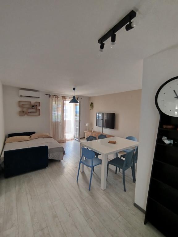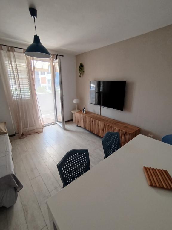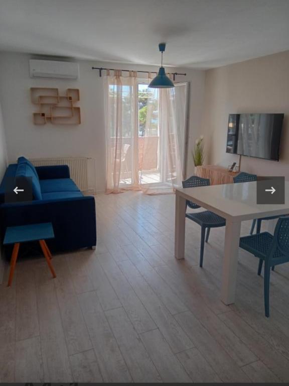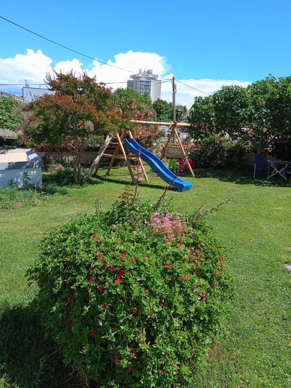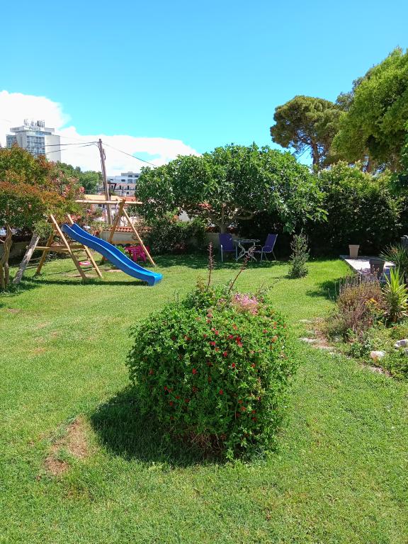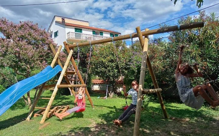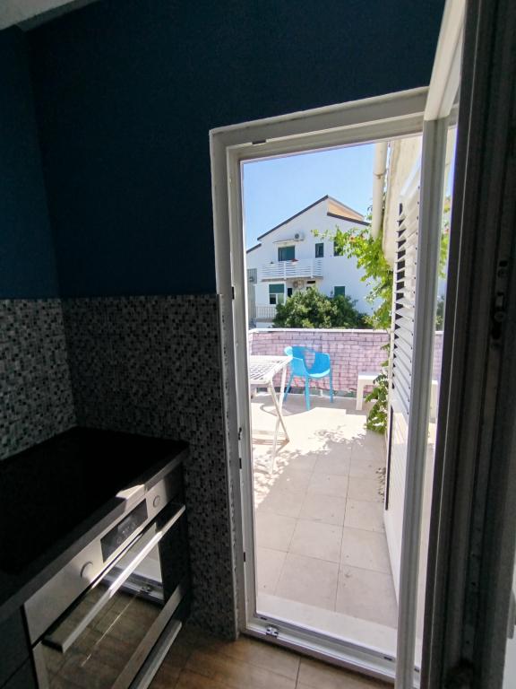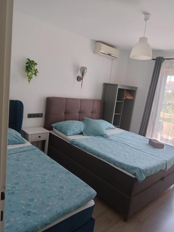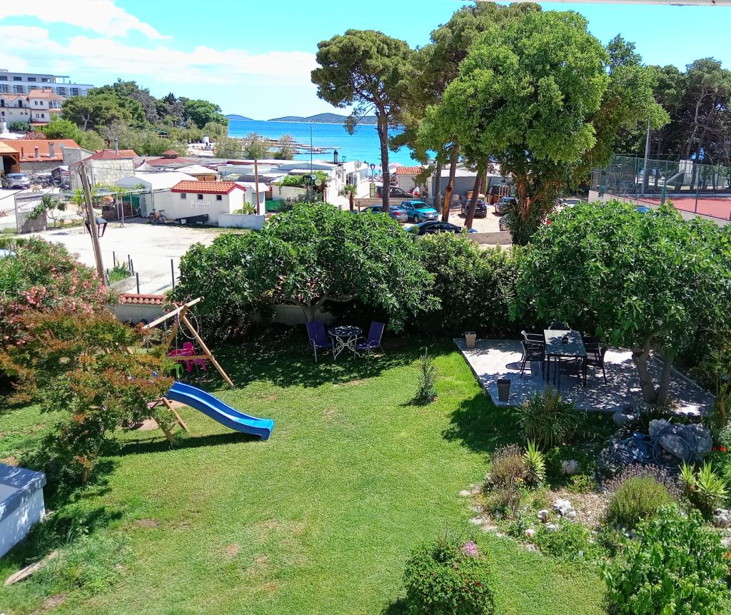 Apartments Blue Beach, který se nachází v klidné části města, na pláži, nábřeží. Do centra a další zařízení se nachází pouhých 5 minut pěšky. Všechny apartmány mají výhled na moře, borovými lesy a krásnou zahradou. Apartmány jsou vkusně zařízené s veškerým potřebným vybavením. Možnost využití, zahrada, gril a dětské hřiště. Parkování ve dvoře.