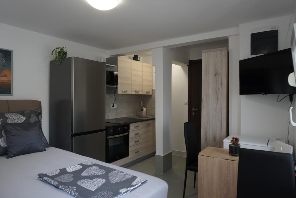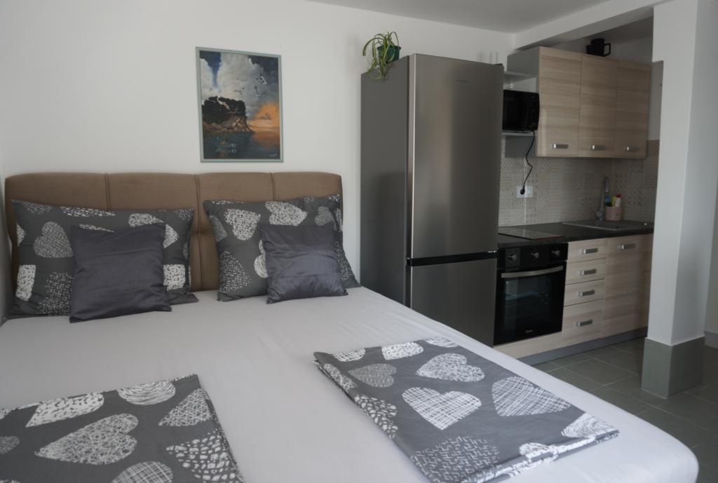 Velmi uklizený a čistý. Apartmán vybavený vším, co potřebujete. Majitelé jsou nesmírně vřelí a milí. Blízko Modré pláže, centra, obchod jen pár kroků od domu.