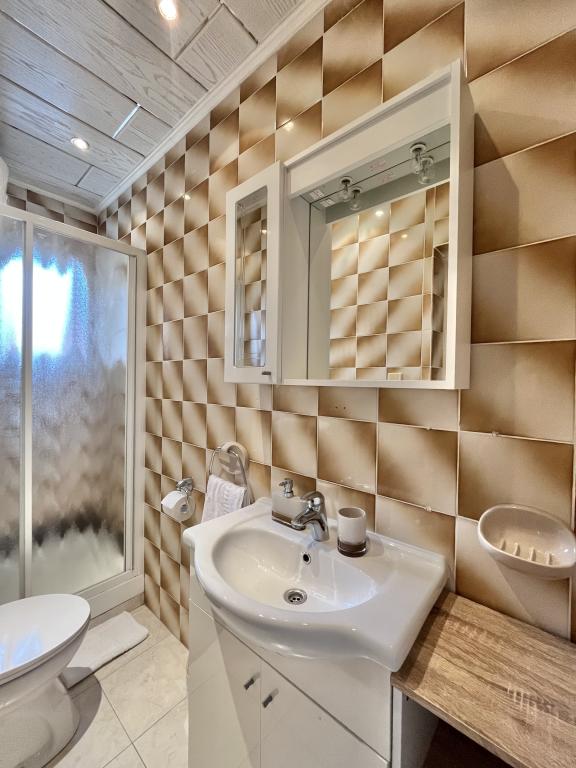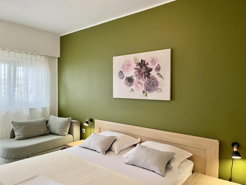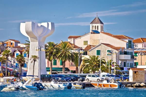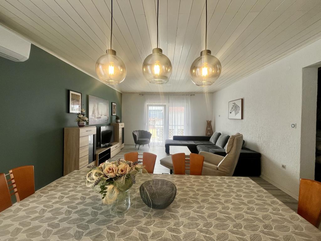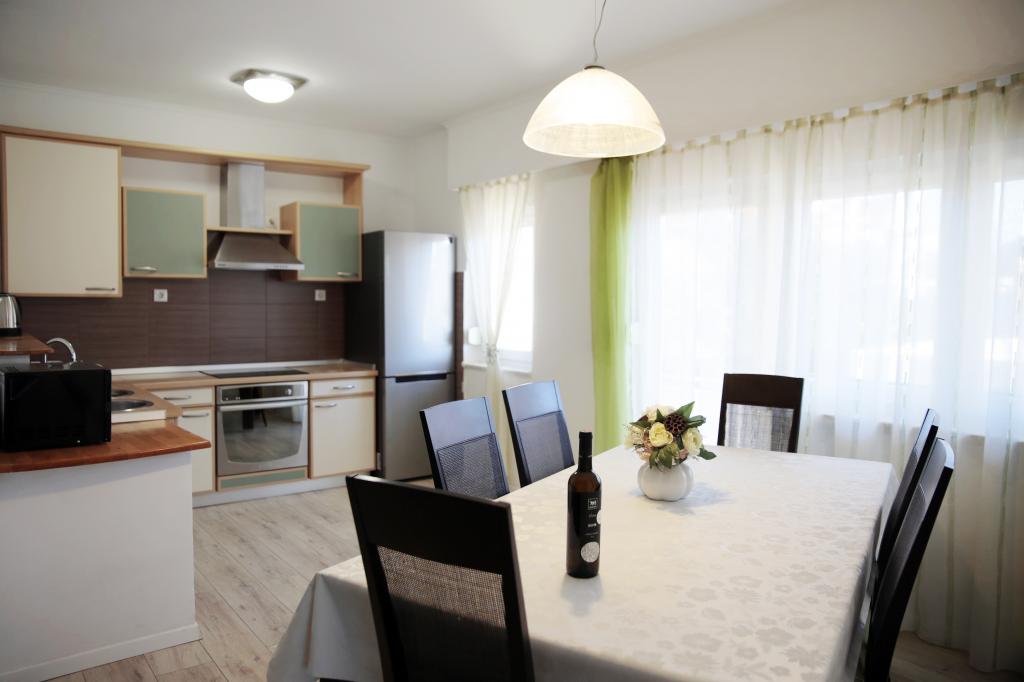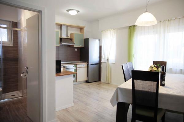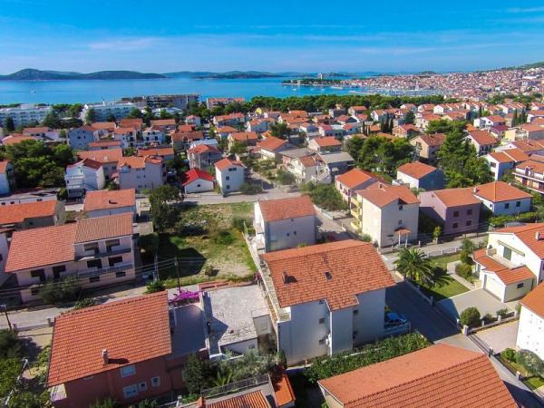 plně a moderně vybavené apartmány v klidné části Vodice, budova je 300 metrů od pláže, 10 minut chůze do centra, každý apartmán má parkování zdarma, WIFI zdarma