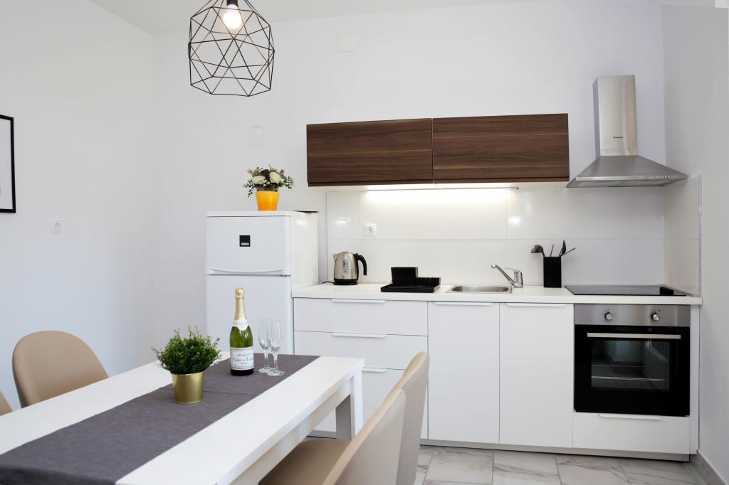 Tři plně vybavené apartmány se nacházejí v rodinném domě ve velmi klidné lokalitě s velkou zahradou a nádvoří, parkování a gril. Všechny apartmány jsou vybaveny klimatizací. Moderní vybavené (klimatizace, internet, DVD, TV se satelitním příjmem). Na pláž jsou vzdáleny 3 minuty chůze a do centra 10 min. Těšíme se na setkání s Vámi.