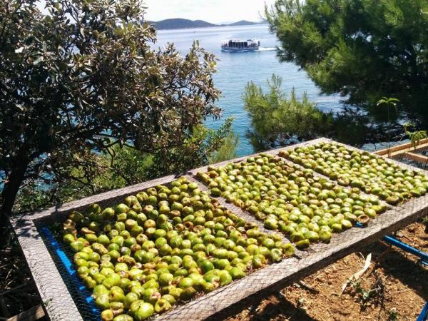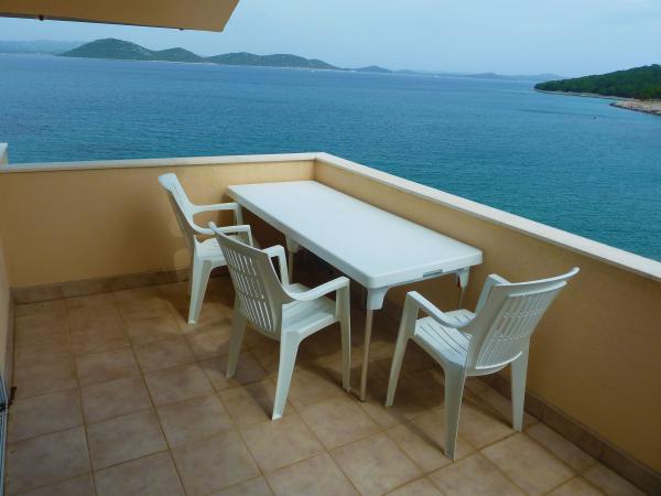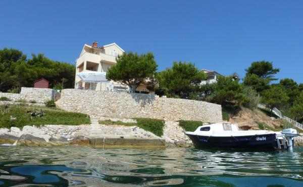 Vrgada, plně vybavené, pohodlné apartmány se nacházejí na pobřeží, v nábřeží. V ideálním případě se nachází nějaký druh 300 m od centra města, nabízí všem restaurací na ostrově míru a izolace, a přesto dostatečně blízkost. Každý apartmán má dva balkony s výhledem na moře, v přední části domu je terasa s lehátky, ze kterých si můžete vychutnat krásný výhled. Za domem je zahrada s olivovníky a tradiční středomořskou vegetací, zatímco přední nádvoří s borovicemi. Skalnatá pláž je v přední části domu, zatímco písečná pláž je pouhých 200 metrů nebo tři minuty chůze.