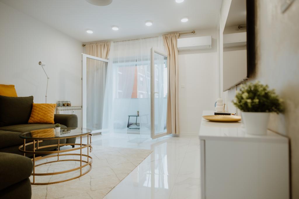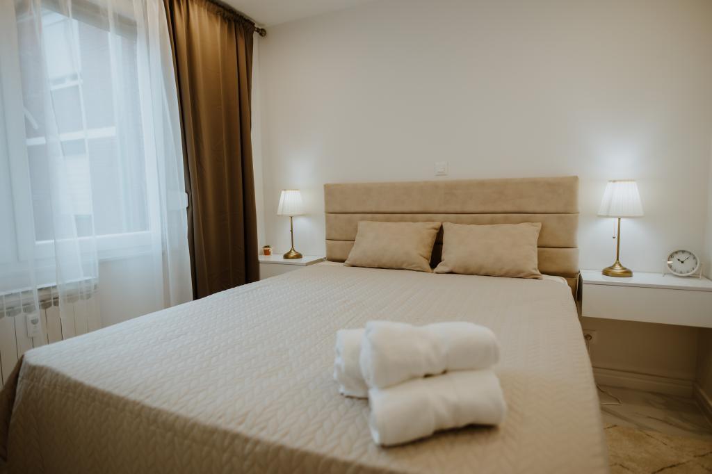 Přejeme Vám srdečné přivítání ve městě Vukovar a v našem luxusně zařízeném apartmánu s nadějí, že budete z Vukovaru odcházet s nezapomenutelnými dojmy! Byt má velikost 59 m2, je zařazen do kategorie 4 hvězdičky a je vybaven nábytkem na míru, velkou TV s plochou obrazovkou a bezplatným Wi-Fi, klimatizovaný, s velkou lodžií uzavíratelnou roletou s dálkový ovladač v případě potřeby i veškeré spotřebiče (pračka pračka, sušička, myčka, lednice s mrazákem, trouba, vestavná varná deska). Apartmán poskytuje komfortní ubytování pro maximálně 4 osoby s nadstandardním komfortem a vybavením a pro hosty apartmánu je k dispozici bezplatné parkovací místo. Z ložnice je výhled na řeku Vuka, symbol Vukovaru - Vodárenskou věž a zvonice vukovarských kostelů. V okolí budovy se nachází četná sportovní zařízení, promenáda podél řeky Vuka, která vede k soutoku Vuky a Dunaje, je vzdálena 550 m od centra města a v bezprostřední blízkosti všech památek a institucí města . Příjemný pobyt!