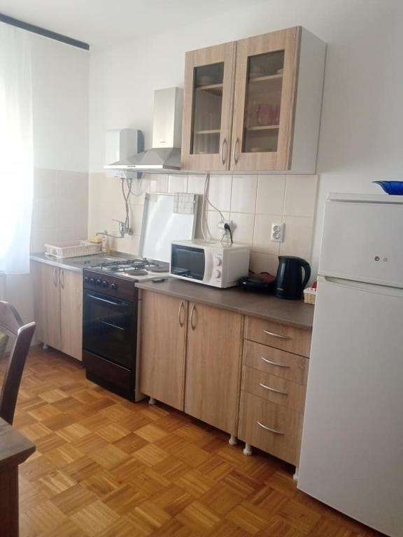 Apartmán "Kod dide i baka" se nachází v klidné části Mitnica, v prvním patře rodinného domu. Skládá se ze tří pokojů, kuchyně a koupelny. Třílůžkový pokoj (manželská postel a samostatné lůžko) má balkon s výhledem na trávník a do ulice. Dvoulůžkový pokoj má dvě oddělené postele. Pokoj se třemi samostatnými lůžky (dvě lze spojit do dvoulůžka) má vedle baldachýnu třešně velkou terasu na ranní kávu. Pokud přijedete s dětmi, máme i dětskou postýlku pro naše nejmenší hosty. Auto můžete zaparkovat v garáži ve dvoře. Našim hostům nabízíme grilování v altánku s velkým jídelním stolem. Za grilem je malá zahrádka, kde si můžete natrhat vlastní sezónní salát vypěstovaný tradičním způsobem. Jsme vám k dispozici pro všechny vaše dotazy. Těšíme se na váš příjezd a srdečně vás vítáme! dědeček Ivica a babička Mirjana