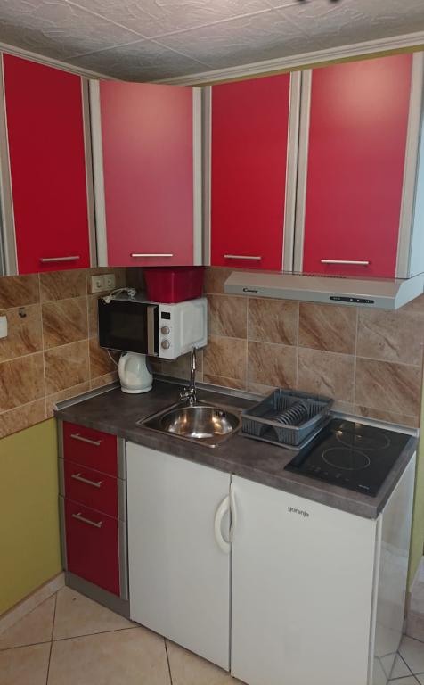 Apartmány jsou čisté, elegantní, moderní. Prostředí pěkně zdobené. Fotografie a popis odpovídají skutečnému stavu, lidé jsou velmi milí a společní. K dispozici je parkovací místo, žádný hluk. Pláž je uklizená, bez moře, má stín. Všechny chválu majitelům .. doporučujeme také akce ..