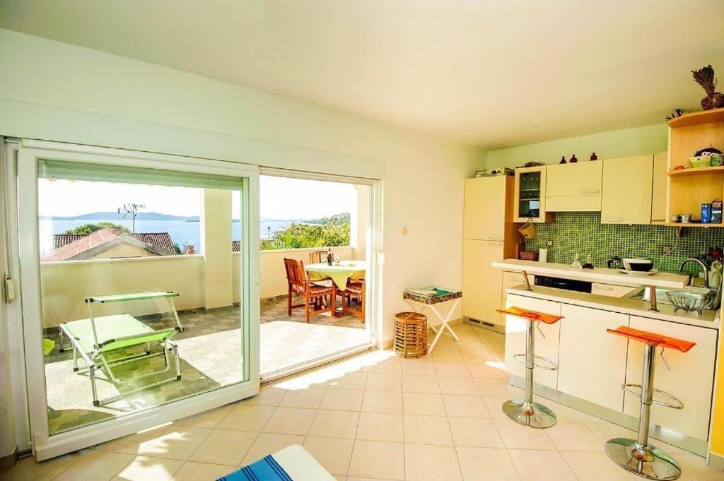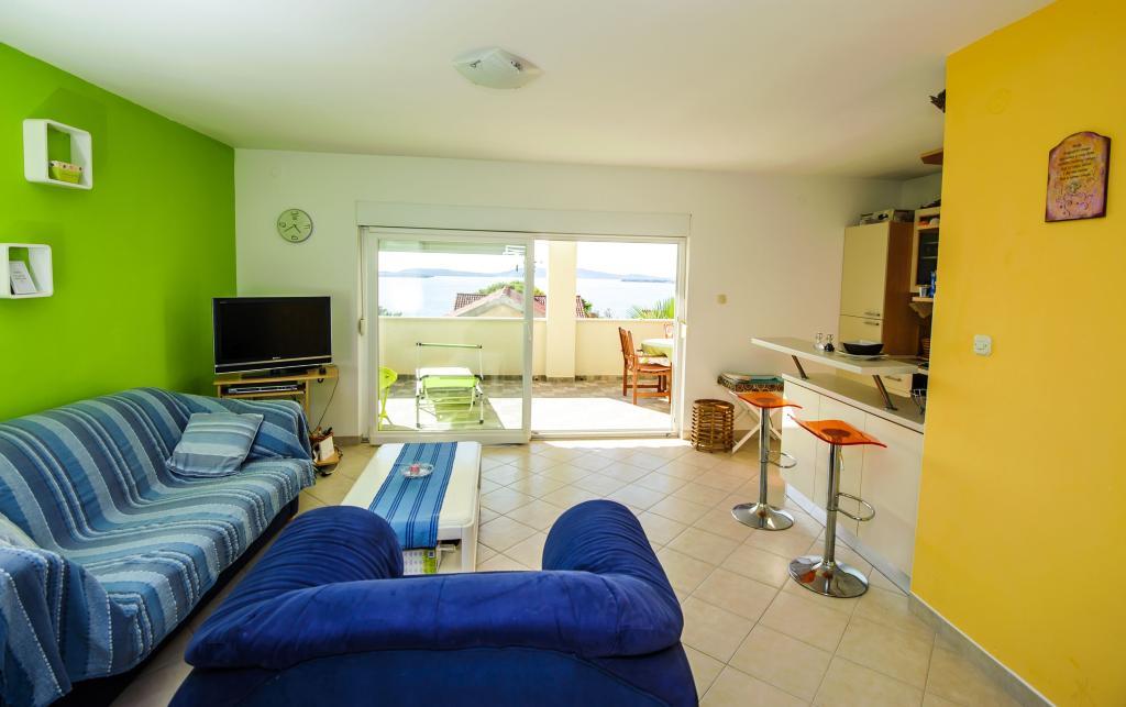 Byt se nachází v prvním patře domu, a jelikož je dům na kopci, nabízí uživatelům nádherný výhled na moře a záliv. Z terasy je také vidět ostrov Krapanj, nejníže položený ostrov v Evropě. Dům se nachází v klidné ulici, takže pokud chcete opravdovou dovolenou, ubytování je ideální. Pokud přesto chcete navštívit restaurace, lounge bary atd., Žaborić vám nabízí několik restaurací a zábavy přímo u moře. Do samotného centra obce se můžete vydat pěšky (20 minut) nebo autem (3 minuty). Velké nákupní centrum Dalmara se nachází na silnici do Šibeniku, který je vzdálený 10 km. Žaborić je ideální, pokud chcete navštívit okolní města, jako je Primošten, Vodice, Split nebo Zadar, ale doporučujeme navštívit i jen 20 km vzdálený národní park Krka. Hostitelé vám nabízejí mnohem více podrobností a pomáhají se vším.
