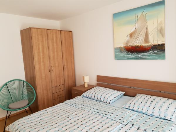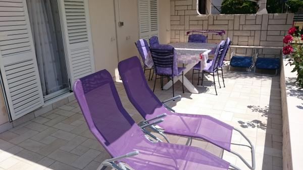 Kompletně zařízený byt s velkou terasou, pouhých 20 m od pláže, je tou pravou volbou pro. všechny, kteří si chtějí užít pohodovou dovolenou a dovolenou. Byt je klimatizován, hosté mohou využít bezplatné parkoviště, venkovní gril, sprcha a Wi-Fi. V blízkosti písčité, betonové a oblázkové pláže, pizzerie, koktejlové bary a hřiště zaručení odklon od každodenního života a užít si to, co milujete nejvíce.