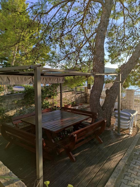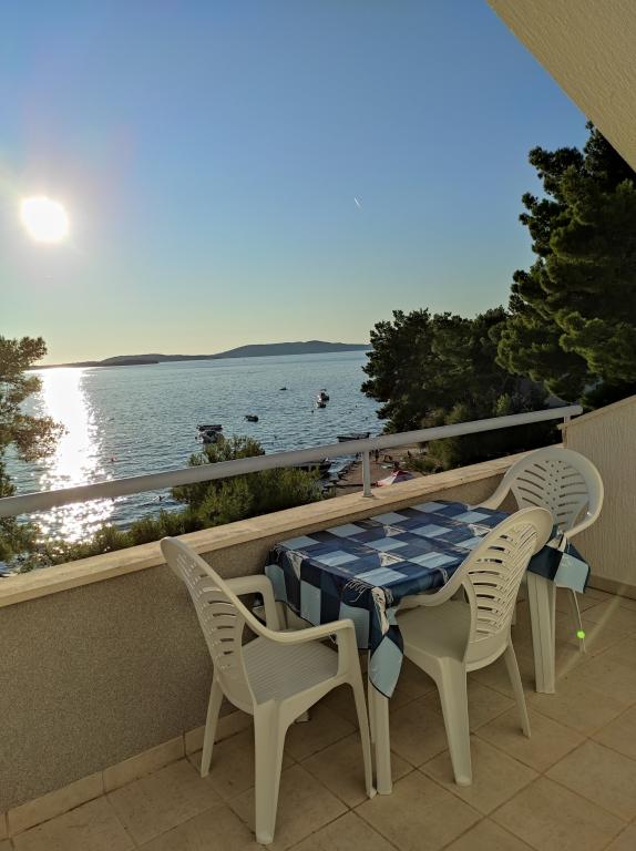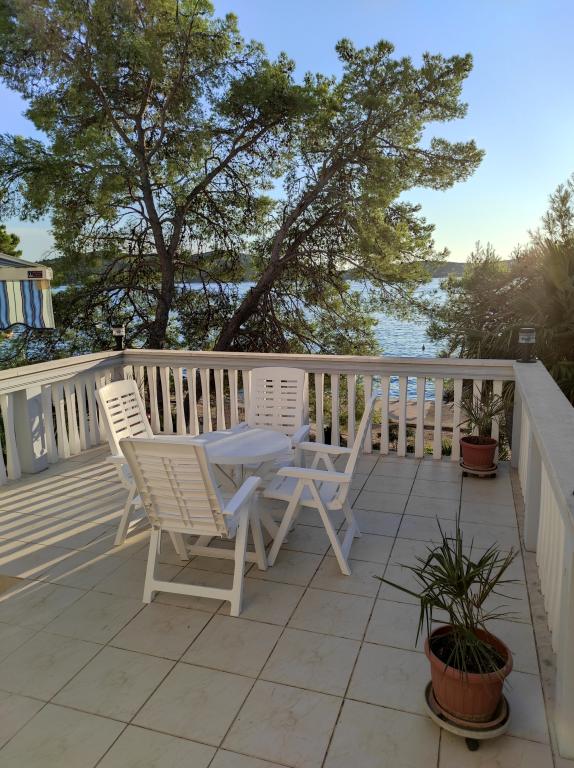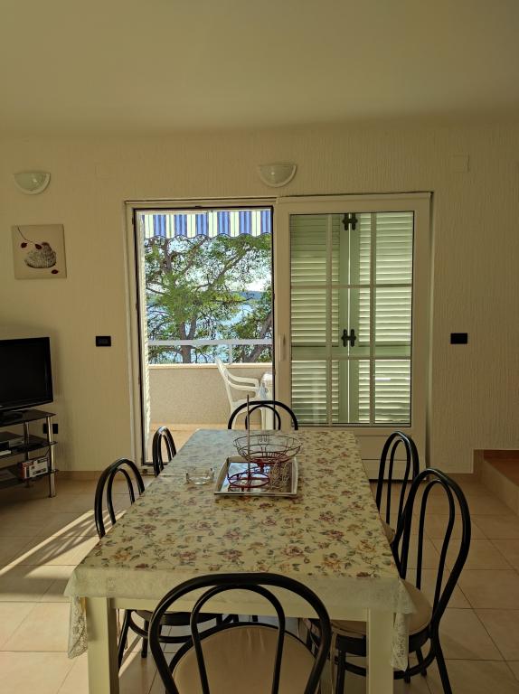 Vila Dradar se nachází v první řadě u moře. Ap A10 (A6+A4) Nabízíme vám náš vysoce ceněný apartmán A10, který se skládá ze dvou pater. Prostor se skládá z: V prvním patře je kuchyň, jídelna/obývací pokoj s rozkládací pohovkou, koupelna, tři ložnice se 6 lůžky, šatní skříň a balkon s výhledem na moře před domem. Spojení mezi oběma patry je vnitřním schodištěm. Ve druhém patře je kuchyň, jídelna/obývací pokoj s rozkládací pohovkou, koupelna, šatní skříň a dvě ložnice se 4 lůžky, terasa s výhledem na moře. K dispozici je také garáž, parkování pro další dvě auta, gril, zahrada, zahradní nábytek s markýzou, venkovní sprcha, lehátka a slunečníky, pláž před domem pro dospělé i děti. Máme místo pro kotviště lodí. Vše je nově zařízené a kategorie 4 **** Cena pobytu je 40 € na osobu/noc. Při příjezdu je vyžadována záloha ve výši jednoho denního nájmu pro případ pojištění škody. Částka se vrací při odhlášení.