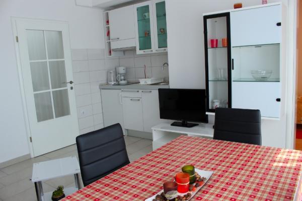 Apartmánový dům se 3 apartmány, v klidné a slunné poloze. K moři a pláži 50 m. 1 km od centra Žaborić, 8 km od Šibeniku, 14 km od Primoštenu. V blízkosti národního parku Krka a Kornat, hotel Solaris Společné: gril, stolní tenis, venkovní sprcha. Oplocené parkoviště na pozemku. 3 4-pokojový byt pro 6 osob, v 1. patře, 80 m2: Obývací pokoj, satelitní / TV / LCD, klimatizace, výstup na balkon (8m2, výhled na moře). Kuchyně (4 sklokeramické varné desky) s jídelním stolem. 1 ložnice s francouzskou postelí (160x200 cm), výstup na stejný balkon. 1 ložnice s francouzskou postelí (140x200cm). 1 pokoj s palandami (2x90cmx200cm). Koupelna / WC. Samostatné WC. 33-pokojové apartmány pro 4 osoby, ve 2. patře, 40 m2 / apt. Zelená a červená: Obývací pokoj / jídelna, satelitní / TV / LCD, klimatizace, výstup na balkón (2m2, pěkný výhled na moře). Otevřená kuchyně (2 sklokeramické varné desky). 1 ložnice s francouzskou postelí (140x200cm). 1 pokoj s palandami (2x90 cmx200cm). Sprcha / W