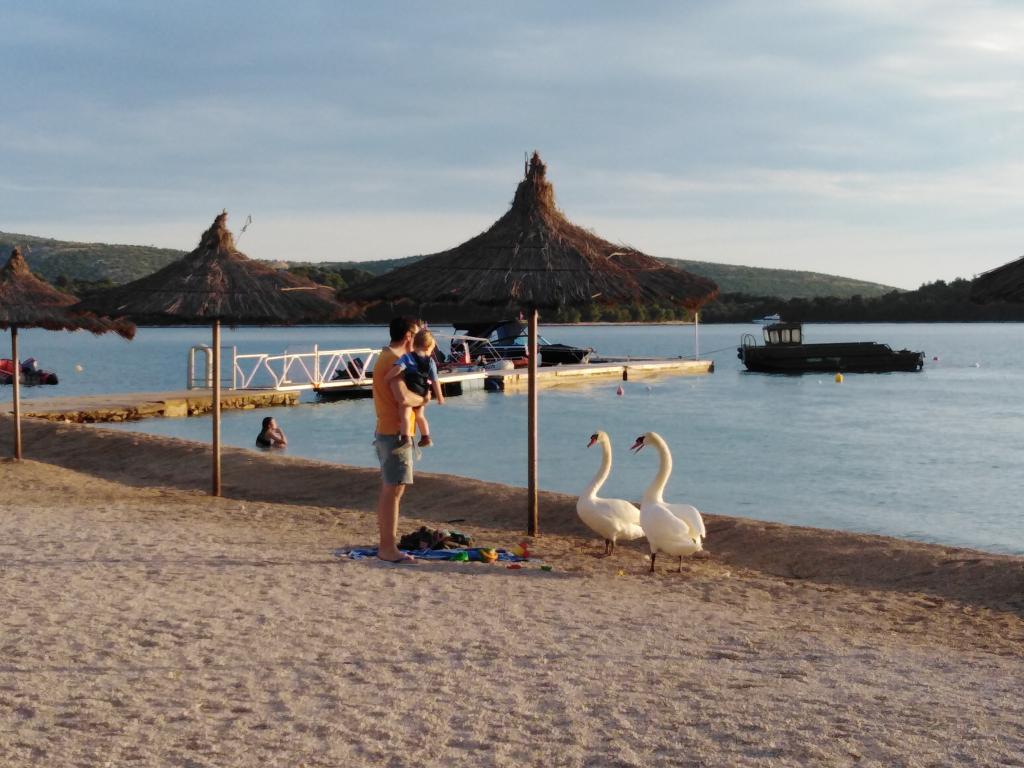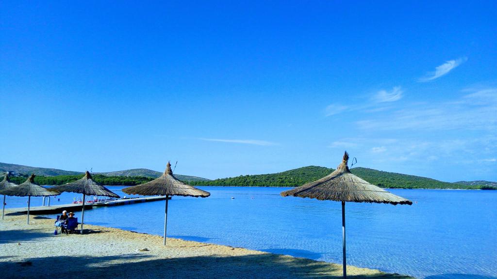 Velmi klidná, neobsazená, pěkná pláž uvnitř zálivu, kam se dostanete elektrickým vozíkem. Poloha přímo u pláže, velmi velký byt v přízemí - velmi těžký elektrický výlet přes terasu - jen jeden krok a práh - měli jsme vlastní příjezdové cesty - takže pro nás to bylo v pořádku; vzhledem k našim velmi neobvyklým potřebám - zdravotně postižený s námi použil obrovskou sprchu v sousedním kempu na cestě z pláže. Byt ve stylu 90. let - možná ne nejnovější módy, ale dobře udržované a velmi čisté, klimatizace a kompletní vybavení. A co je nejdůležitější - JOŠKO - zlatý muž - neuvěřitelně milý a vstřícný, s nímž si můžete pěkně povídat, pít to, co někdo rád hraje kulečník a stolní tenis. JOŠKO - DĚKUJEME !!! S POZDRAVEM !!! BRZY SE UVIDÍME !!!