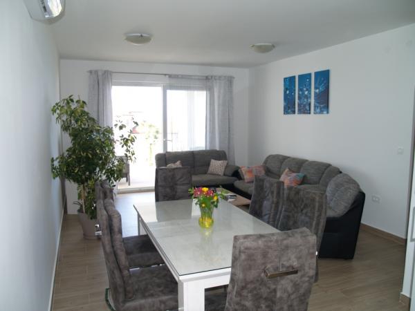 Plně zařízený byt, 3 ložnice s manželskou postelí, každý pokoj má balkon s výhledem na moře. Prostorný obývací pokoj se sedací soupravou, pohovka, vybavené pohodlným kuchyň, koupelna a WC pohodlně. Praking uchyceny k vozidlu. Děti jsou vítány. Zajištěno vozíku na zem.