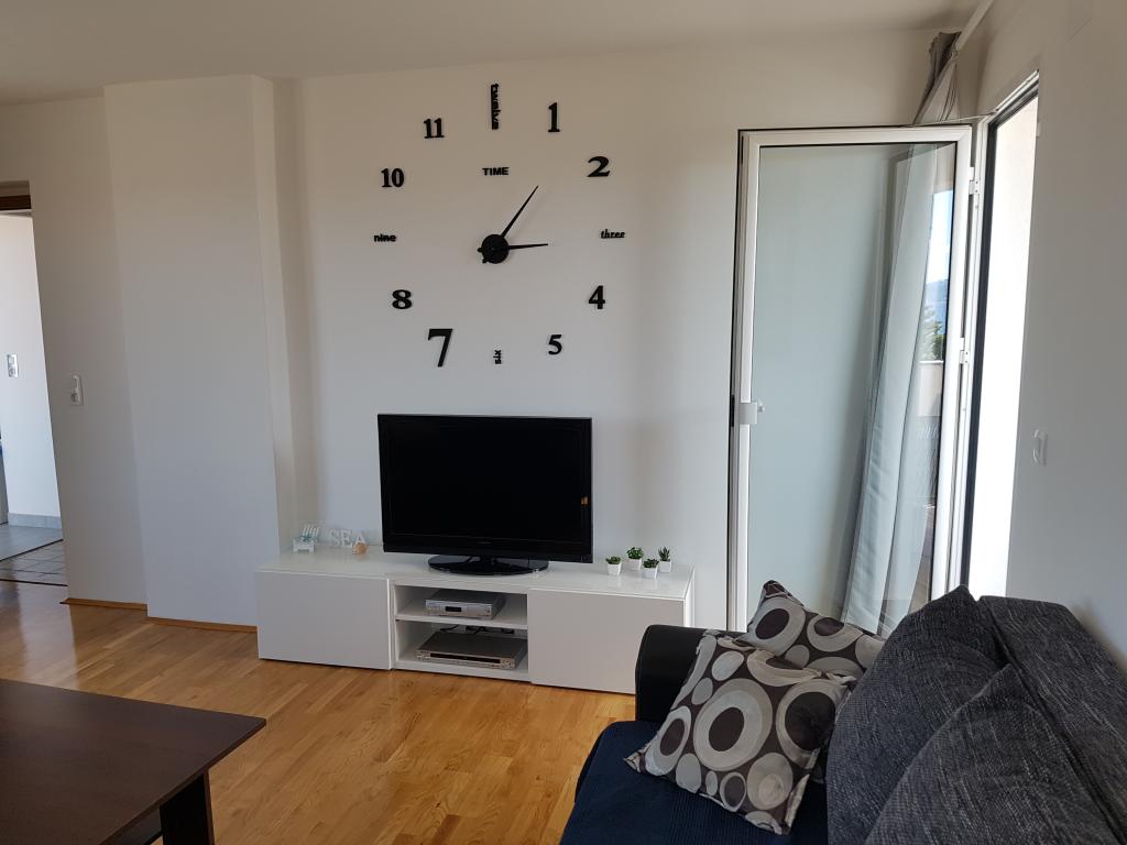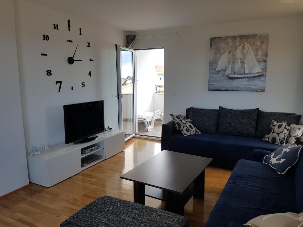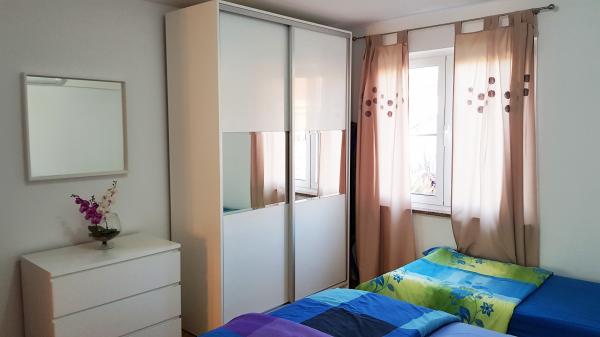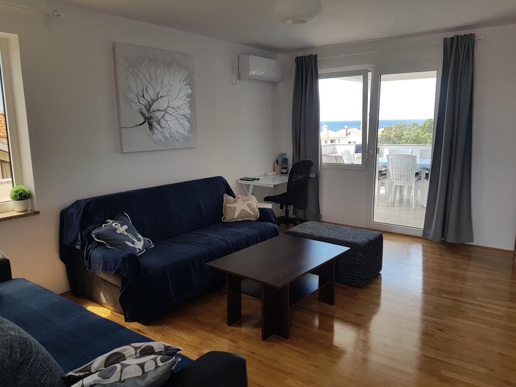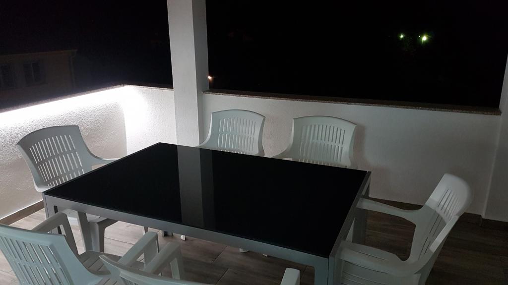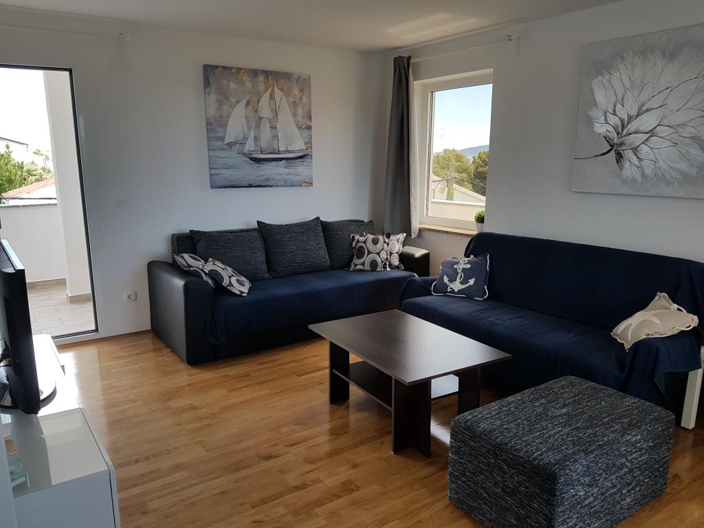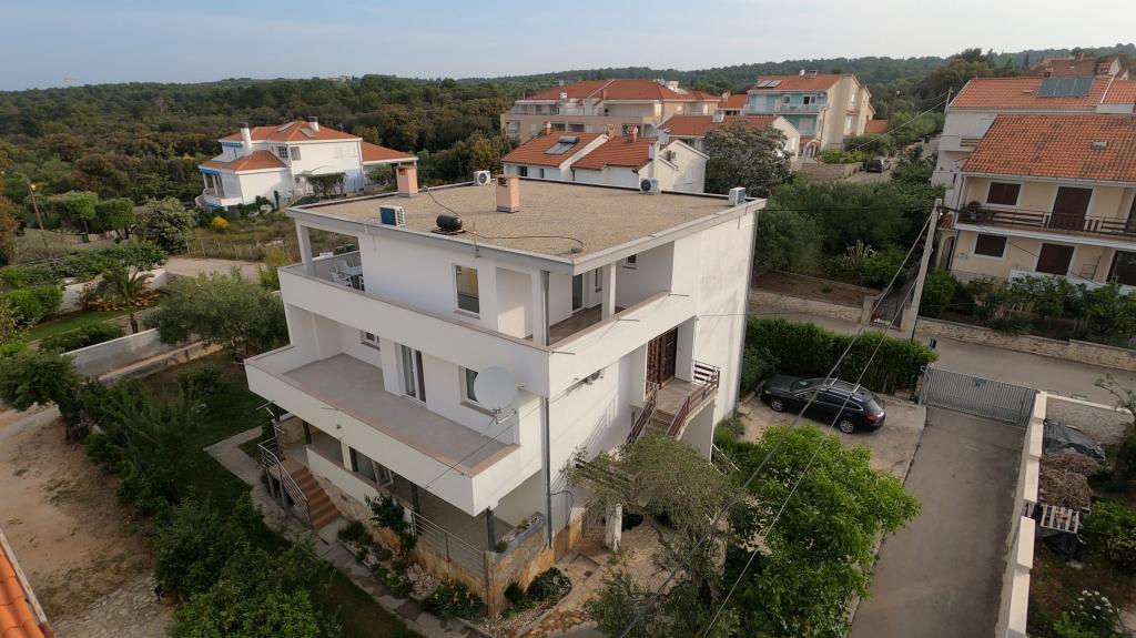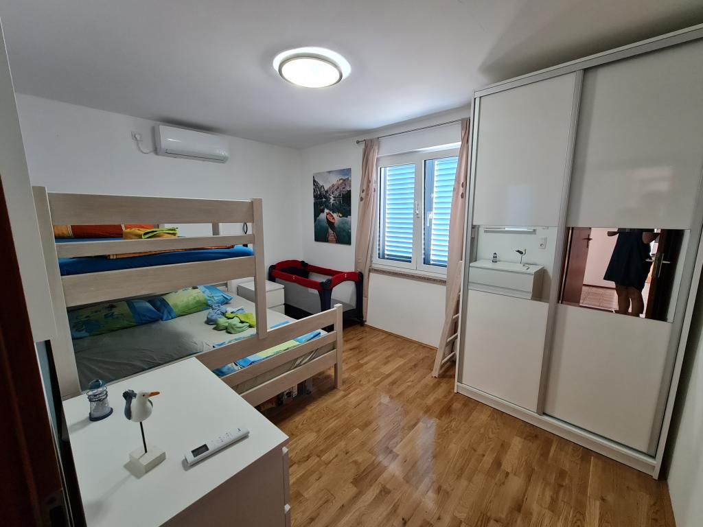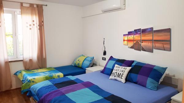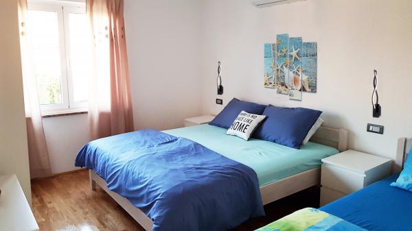 Byt se nachází v klidné lokalitě, 40m od pláže. Má rozlohu 140m2 se 3 ložnicemi, 1,5 koupelnou, kuchyní, obývacím pokojem a dvěma terasami s výhledem na moře. Je to skvělé pro velké rodiny nebo 2 rodiny, kterým nevadí žít společně a chtějí trochu ušetřit. Je také skvělé pro mladé páry, které se chtějí dobře bavit. Je dostatečně pohodlný pro 10 lidí. Pokud jich potřebuje přijít více, je možné cokoli :) Byt se nachází v horním patře domu na obrázku, takže je nádherný výhled. Apartmán je vybaven: TV, satelitem, DVD přehrávačem, klimatizací v každém pokoji, myčkou a pračkou. V bytě je také zdarma k dispozici Wi-Fi. Na zahradě je gril a stůl na stolní tenis. Parkování je možné ve dvoře. Nežijeme v domě, takže budete většinou sami. :)