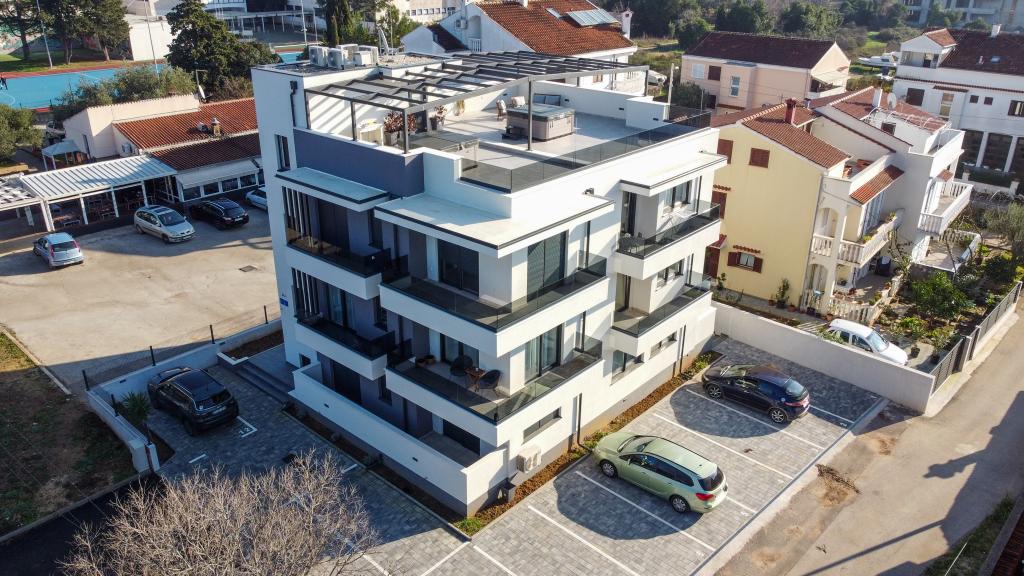 Apartmán Noa se nachází v elitní lokalitě Borik, hned za hotelem Falkensteiner. Centrum Zadaru je od apartmánu vzdáleno 3 km nebo 10 minut jízdy autem. Vedle apartmánu se nachází autobusová zastávka, restaurace, kavárna a lékárna. Všechny pláže jsou v docházkové vzdálenosti: pláž Borik je vzdálená 5 minut, pláž Uskok 10 minut a pláž Puntamika 12 minut. Marina Borik je také vzdálena 6 minut chůze. Apartmán se nachází v prvním patře, má jednu ložnici s manželskou postelí (160x200), koupelnu, plně vybavenou kuchyň a obývací pokoj s rohovou pohovkou s přistýlkou. Každý pokoj má plochou televizi a bezdrátové připojení k internetu a klimatizaci. Kolem celého apartmánu je balkon s výhledem na moře. Parkování je zajištěno vedle budovy. Kouření je v budově zakázáno, kouření je povoleno na balkoně.