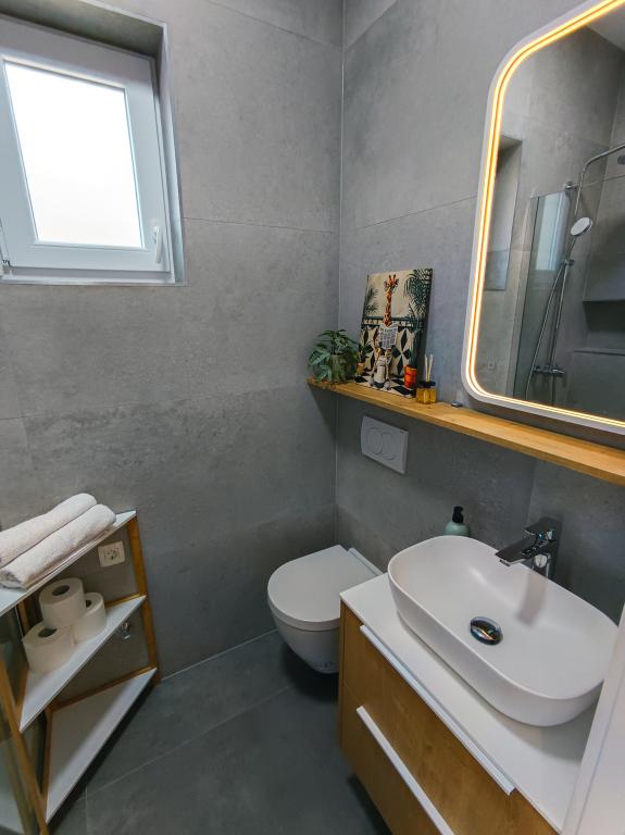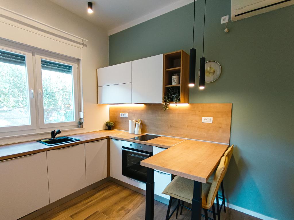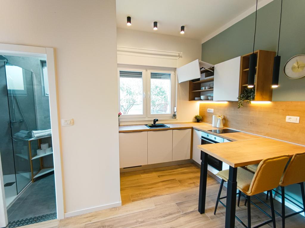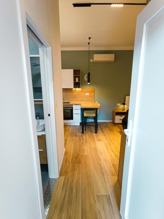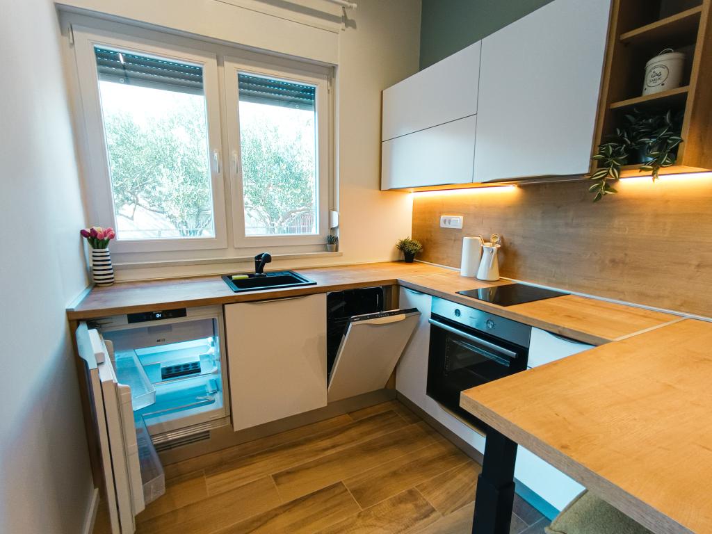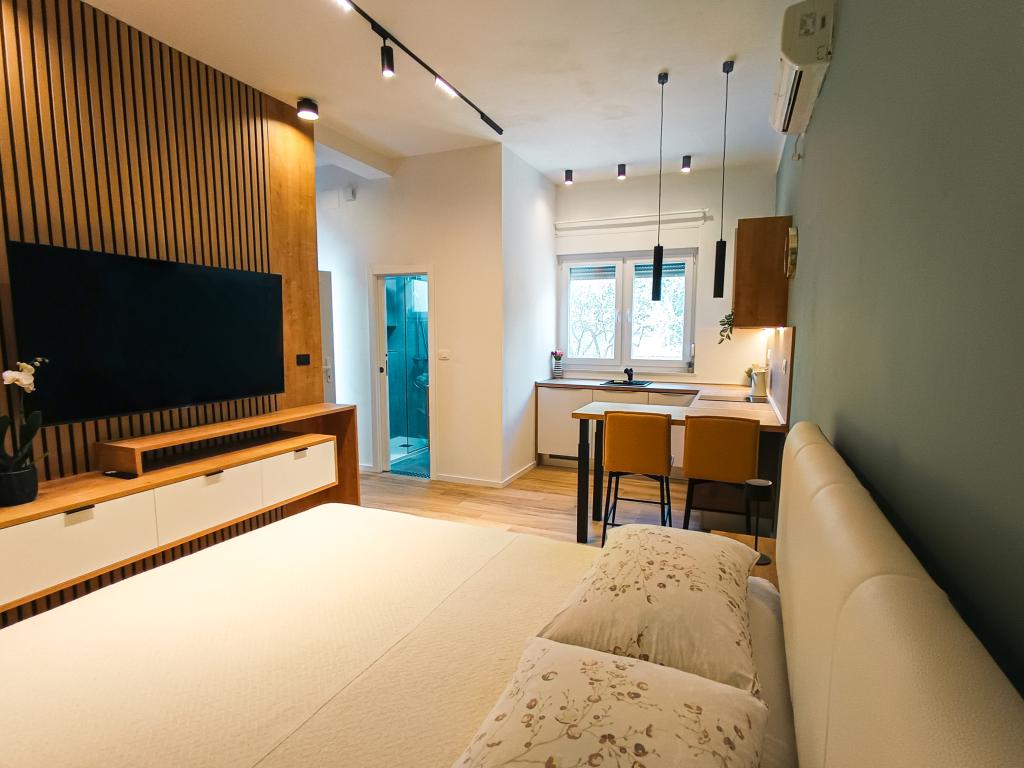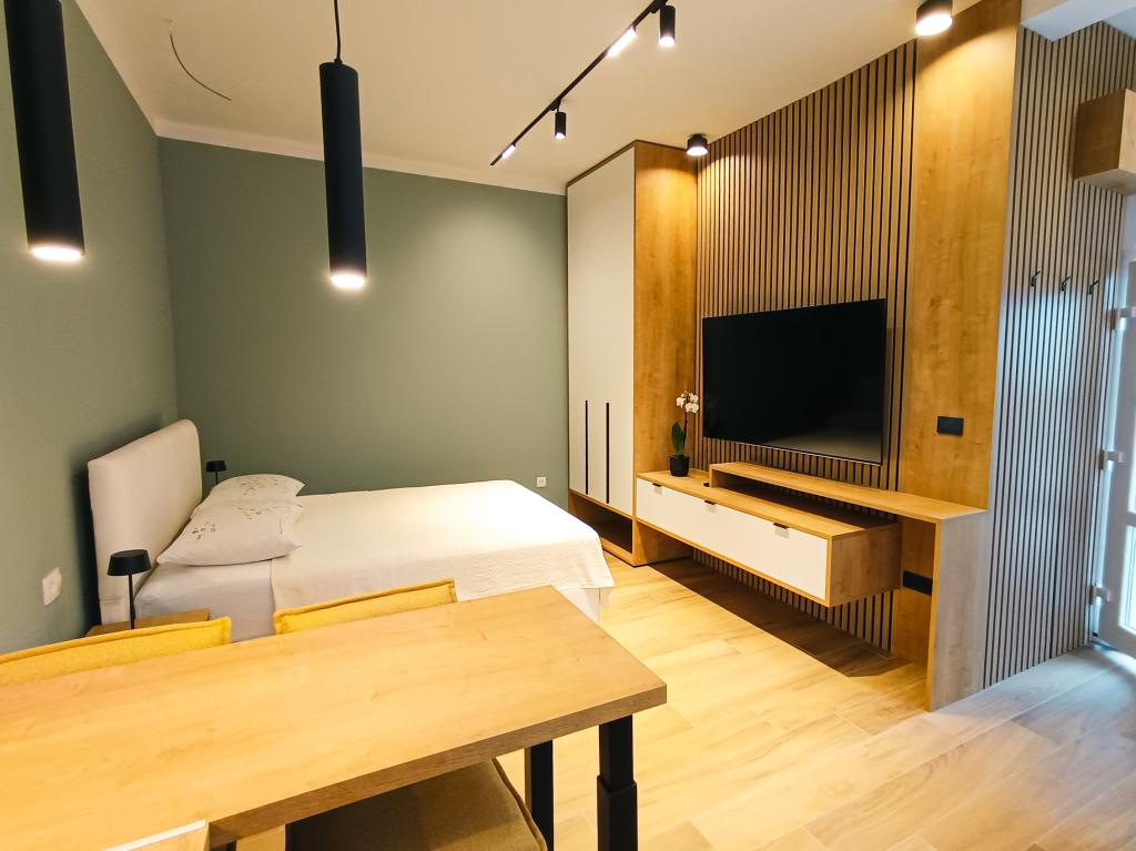 Plně a moderně vybavený studiový apartmán v klidném a rodinném prostředí. Vhodný pro páry nebo rodinu s dítětem. Studiový apartmán je klimatizovaný a má všechny spotřebiče a vybavení potřebné pro bezstarostnou dovolenou v Zadaru. Manželská postel typu BOX, rozměry 160x200 s pohodlnou matrací. Z elektronických zařízení vyzdvihujeme zejména velkou televizi, myčku nádobí, prádelnu s pračkou a vestavěnou lednici s mrazákem. Studiový apartmán obsahuje veškeré potřebné kuchyňské náčiní a základní koření. Po domluvě můžeme přidat dětskou postýlku, dětskou židličku nebo přistýlku. Studiový apartmán má soukromé parkoviště a pro ty, kteří rádi chodí pěšky, je centrum města vzdálené asi 20 minut pěšky. Nedaleko se nachází sportovně-rekreační centrum Višnjik, které je ideální pro každého, kdo rád cvičí venku, vedle kterého se nachází i velké dětské hřiště.