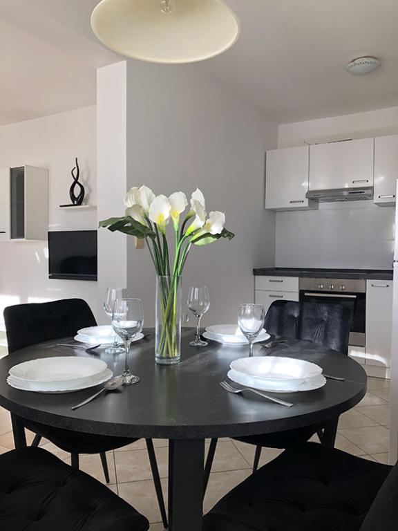 Plně vybavené apartmány v klidné části města Diklo.Apartmány mají vlastní bezplatné parkoviště.Hosté mají přístup do bazénu.Ubytovací zařízení je 5 minut chůze od pláže.Do centra je to 10 minut autobusem nebo autem.