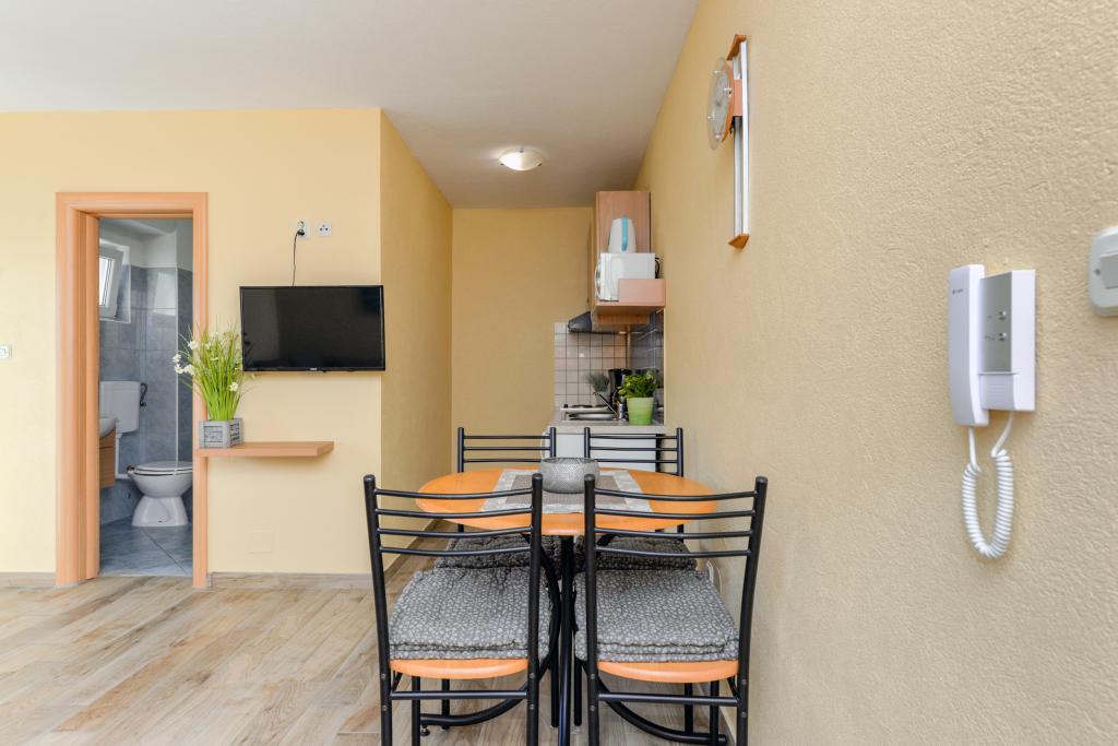 Apartmány se nacházejí 50 m od moře mezi dvěma plážemi Uskok a Marex. Vedle apartmánu se nachází přímořská promenáda, která vede na obě pláže, na které dojdete za 10 minut. Na každé pláži je kavárna a dětský park. Ve starém městě můžete počítat na břehu nebo na lodi. Pěšky to máte 12 minut a loď vám přiveze 1 euro na osobu. Všechny výlety lodí na Kornati vyplouvají z přístavu u východu pod apartmánem, který je 50 m od apartmánu (jednodenní výlety do národního parku Kornati). V blízkosti apartmánu jsou tenisové kurty (100m) a restaurace, Hungry Eyes, Rafaelo, Lungo Mare, Mamma Mia ... (100-800m). Obchod, potraviny, pekárna, lékárna a řeznictví jsou 400 m od bytu (5 minut pěšky). Pro více informací se můžete podívat do schránky a pozdravit