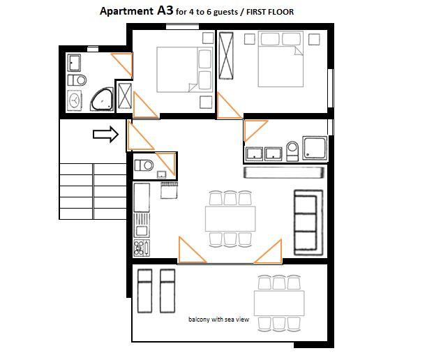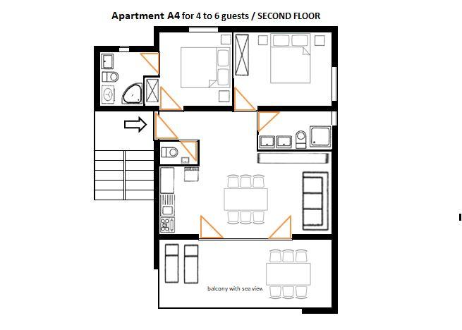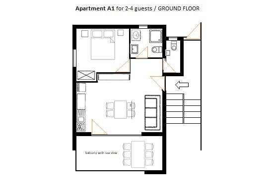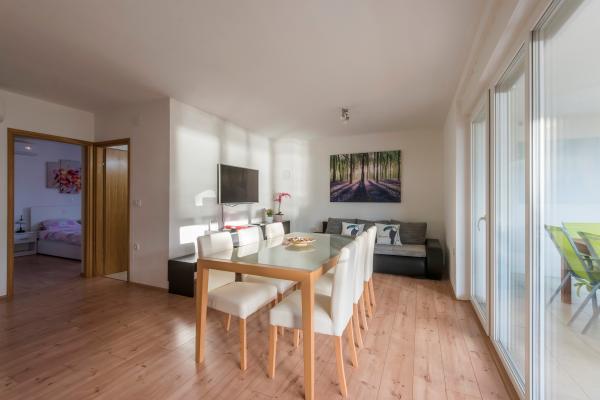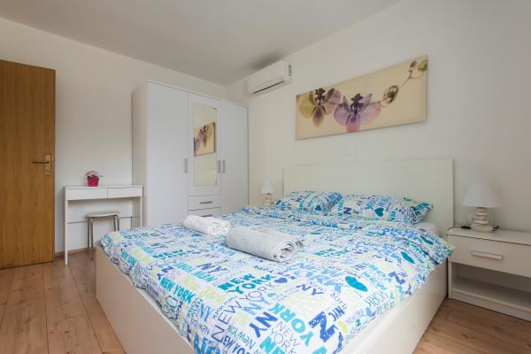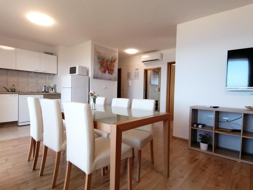Byt A4 + 2 byl opravdu krásný s moderním nábytkem a velkou terasou s krásným výhledem na moře. Byt je ve skvělé lokalitě, pár kroků od pláže. Tři hodiny denně, dobře využívaný bazén, vířivka a sauna, dětské hřiště a gril. Vybavení a čistota bytu na vysoké úrovni. Velmi milý hostitel.