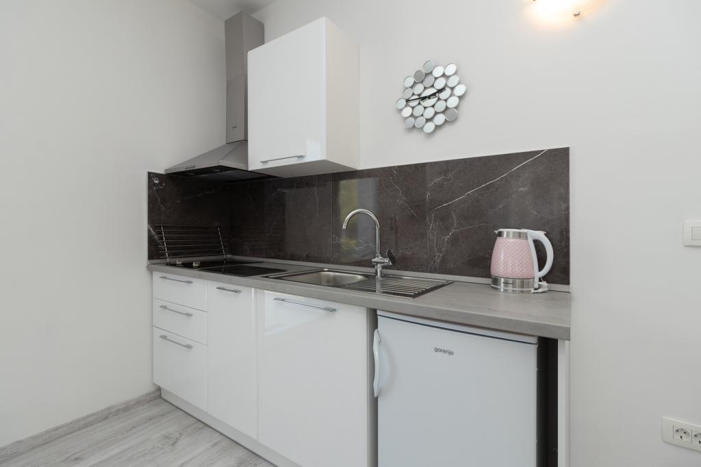 Moderně vybavené apartmány se nacházejí v klidném prostředí s upravenou zahradou, ideální pro relaxaci a trávení času venku. Objekt nabízí perfektní kombinaci pohodlí a funkčnosti a každý apartmán byl pečlivě zařízen, aby hostům zajistil příjemný pobyt. Poloha je mimořádně praktická, vlakové nádraží je vzdálené pouhých 10 minut chůze a letiště 15 minut jízdy autem, což umožňuje snadný příjezd a odjezd. Pokud přijíždíte autem, je zde možnost bezpečného parkování v areálu objektu. Veškeré potřebné vybavení, jako jsou obchody, restaurace a kavárny, se nachází v blízkosti a oblázková pláž je vzdálená pouhých 7 minut chůze.