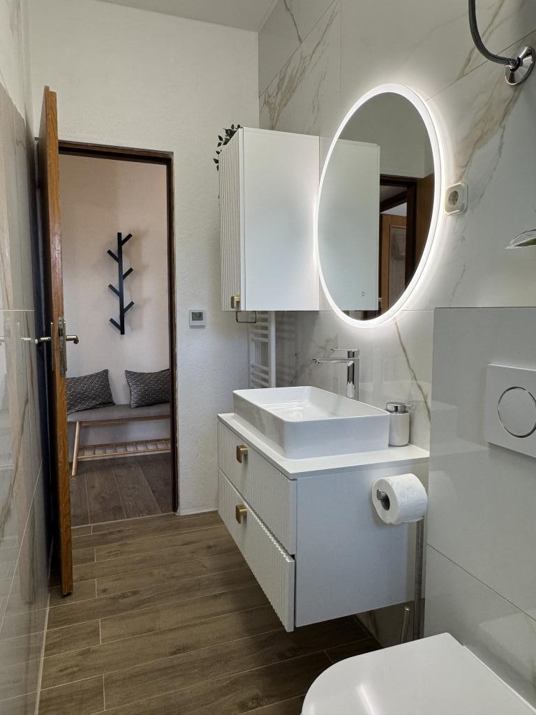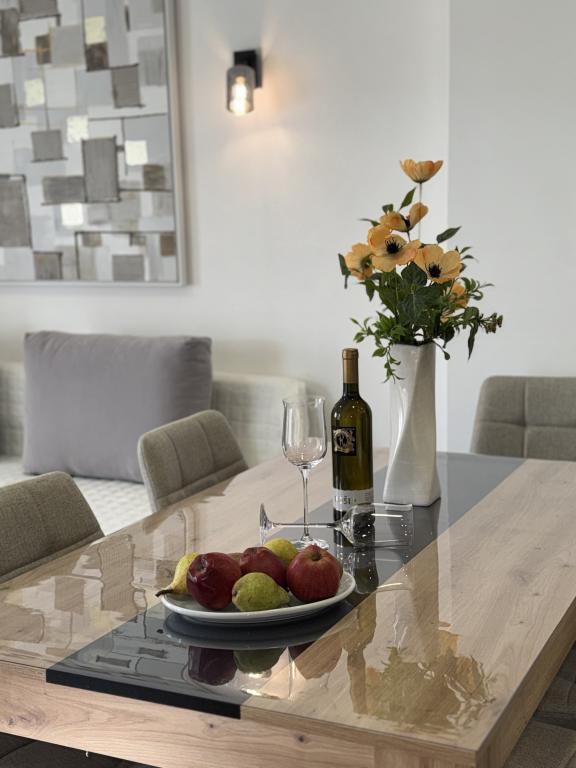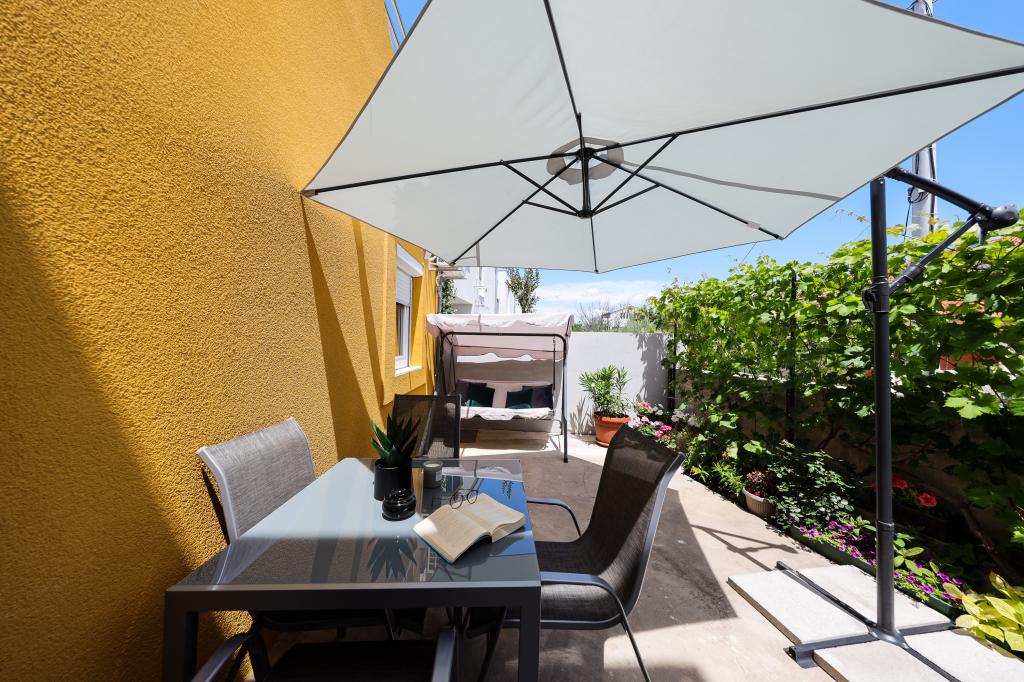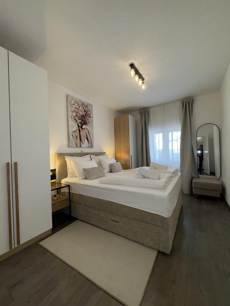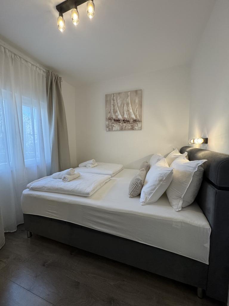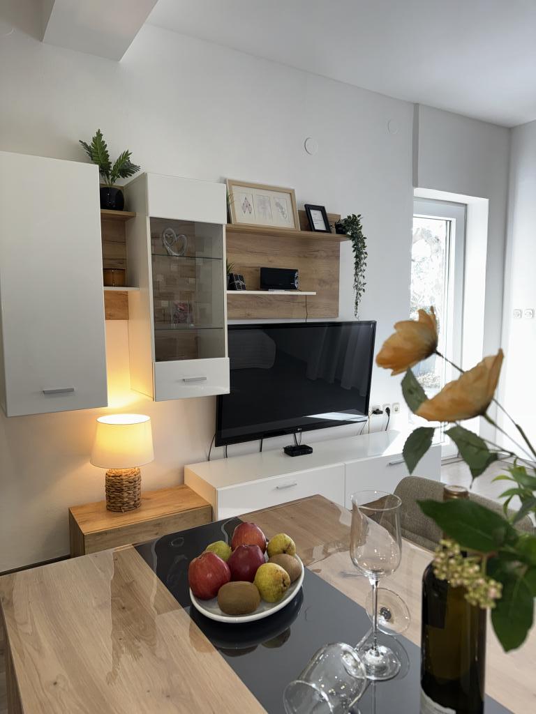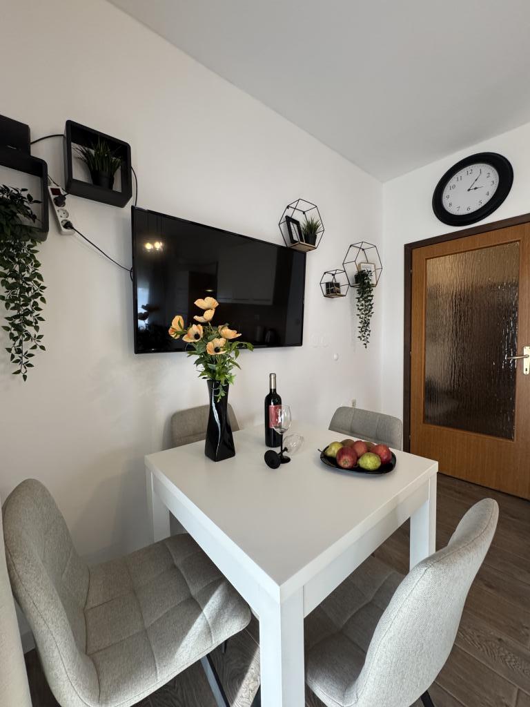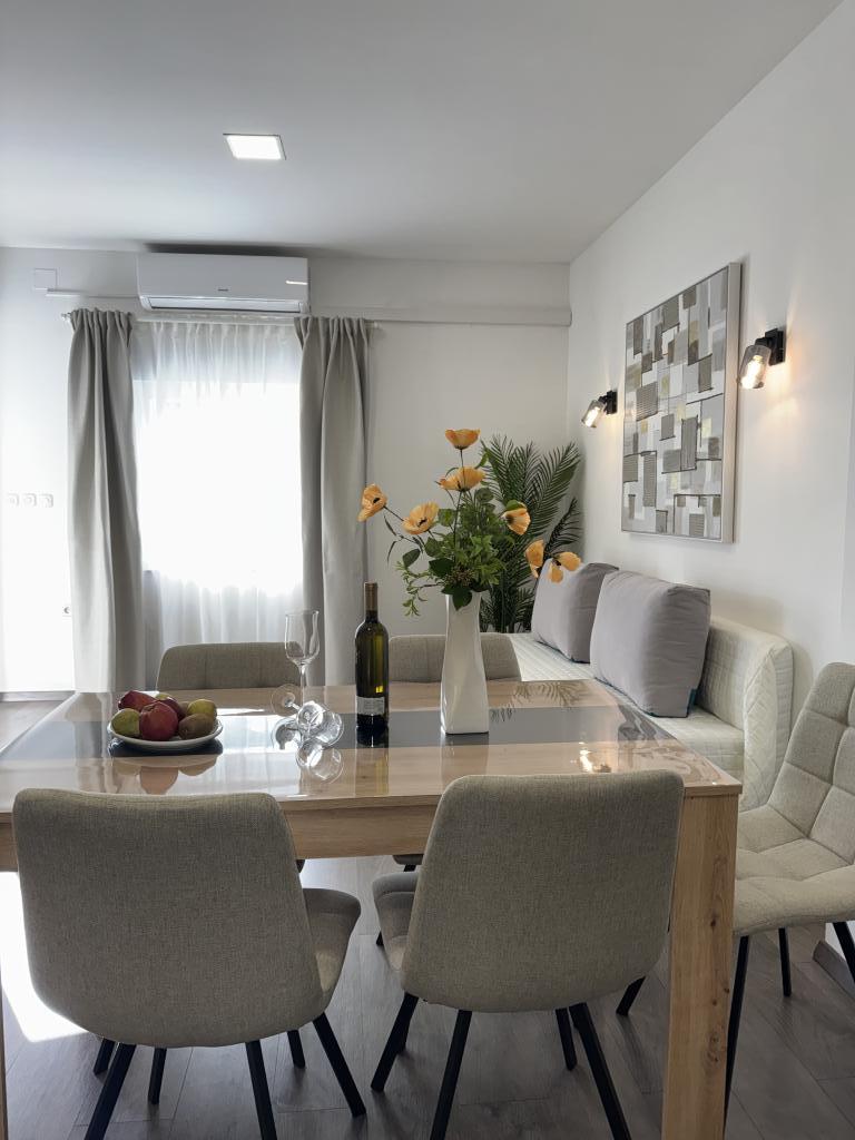 Strávili jsme velmi pěkný týden v bytě 4+2. Byt je velmi pěkný, moderní, čistý, velký a má vše, co potřebujete na dovolené. Vrcholem je terasa s altánem, posezením a fíkovníkem ve dvoře. Promenáda do města je dvě minuty chůze od domu. Parkování je před domem a je skvělé. Samir je velmi milý pronajímatel a je vždy k dispozici, pokud máte nějaké dotazy. Rádi bychom se vrátili.