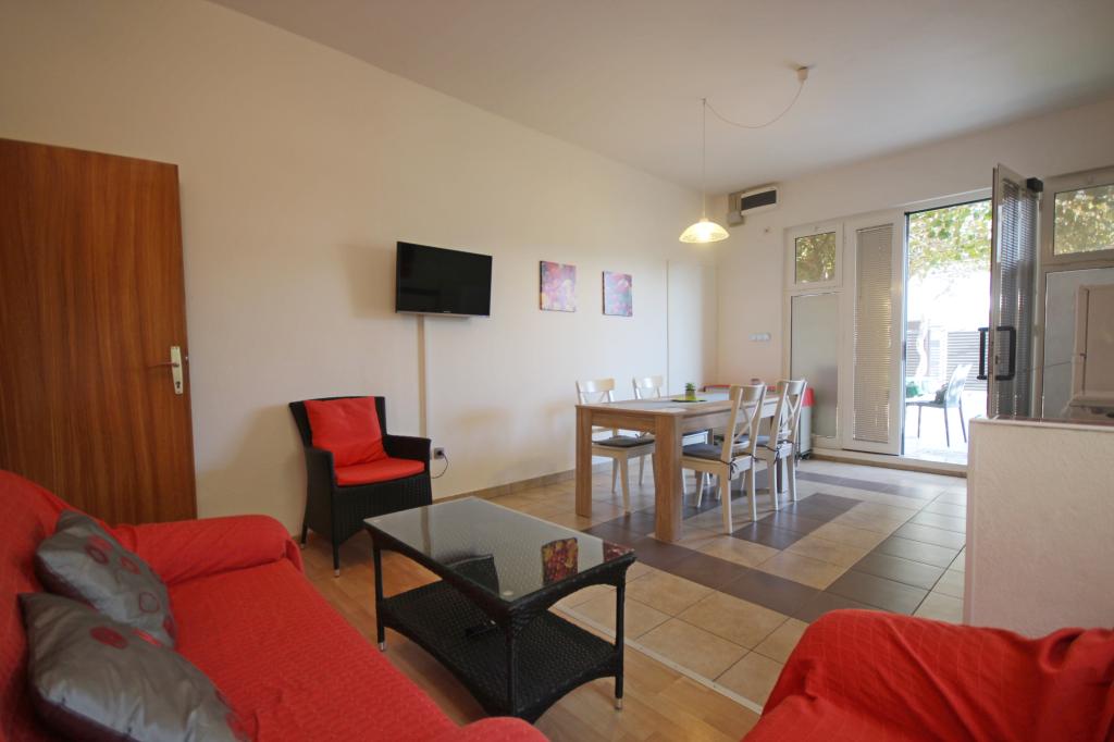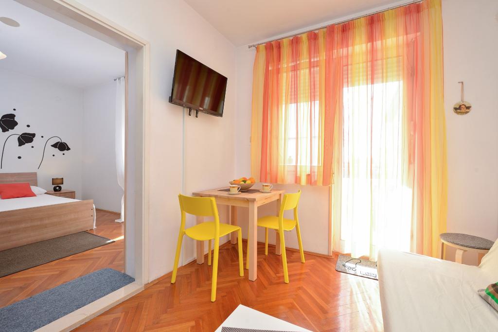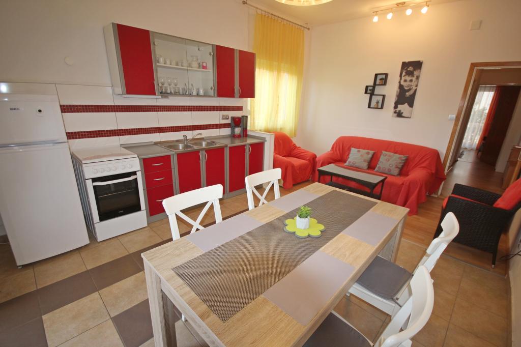 Apartmán v klidné a turistické části Zadaru, zvané Borik. Objekt se nachází 8 minut na pláž, supermarket a autobusové nádraží. Byt je plně vybaven vším, co potřebujete. Má dvě ložnice, koupelnu, velký obývací pokoj s kuchyní a jídelním koutem, jeden balkon vzadu a terasu vpředu. V bytě je klimatizace, satelitní TV, k dispozici je wifi. Parkování je ve dvoře. Hosté mohou využít gril, který se také nachází ve dvoře objektu.