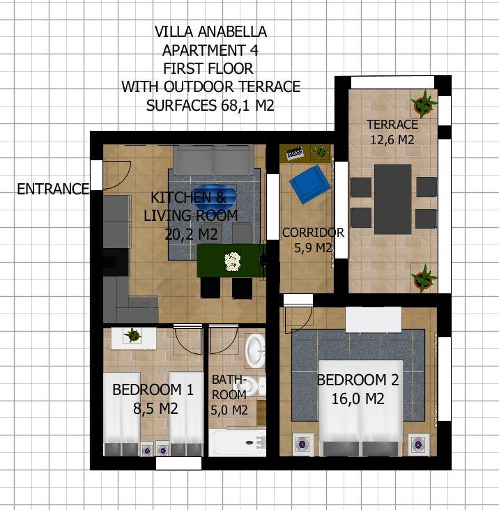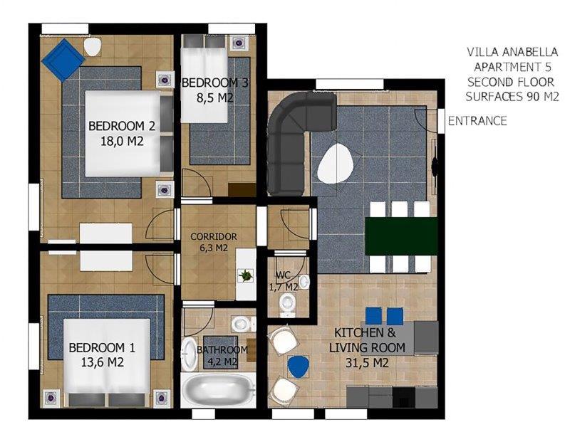 Byt, prostorný, čistý a dobře zařízený, vybavený veškerým komfortem, jako je klimatizace v každém pokoji, sítě proti komárům, myčka nádobí atd. V kuchyni je vše, co potřebujete k vaření, aniž byste se s tím museli spokojit. Poloha je perfektní, v pěší vzdálenosti od pláže a barů a restaurací. Hostitel Anabella je velmi laskavý a nápomocný.
