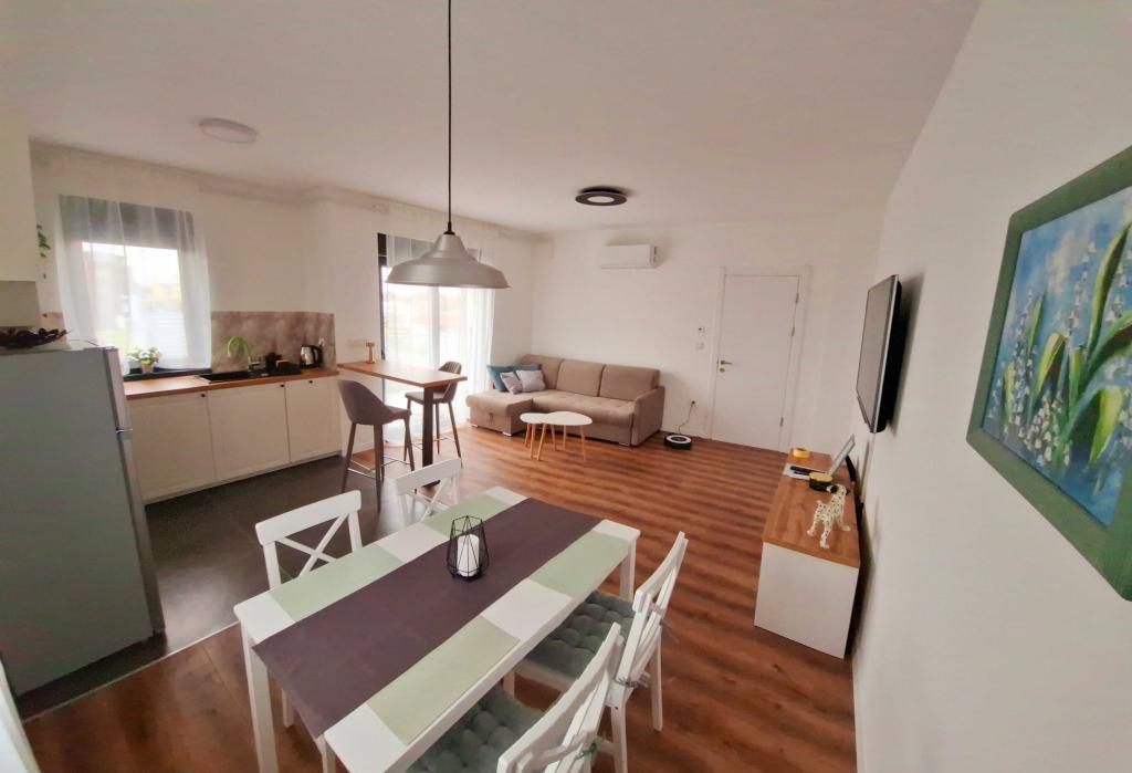 MODERNÍ 2+2 BYT K PRONÁJMU V ZÁHŘEBU – DENNÍ PRONÁJEM (BANI 76) Nabízíme k pronájmu plně vybavený, moderní 2+2 byt na výborném místě v Záhřebu, v klidné čtvrti Bani, ulice Bani 76. Byt je ideální pro páry, rodiny nebo obchodní cestující, kteří chtějí pohodlí, soukromí a dobré spojení do města. Popis bytu: Byt se skládá z pohodlné ložnice s manželskou postelí, moderně zařízeného obývacího pokoje s rohovou rozkládací pohovkou (2 přistýlky), plně vybavené kuchyně a jídelny, koupelny s vanou a chodby a vstupního prostoru. Z obývacího pokoje je vstup na prostorný balkon, ideální pro ranní kávu nebo večerní relaxaci. Vybavení: Bezplatné Wi-Fi Klimatizace Smart TV Pračka Plně vybavená kuchyň (lednice, trouba, varná deska, mikrovlnná trouba, varná konvice) Čisté ručníky a ložní prádlo Fén a základní toaletní potřeby Parkování před budovou