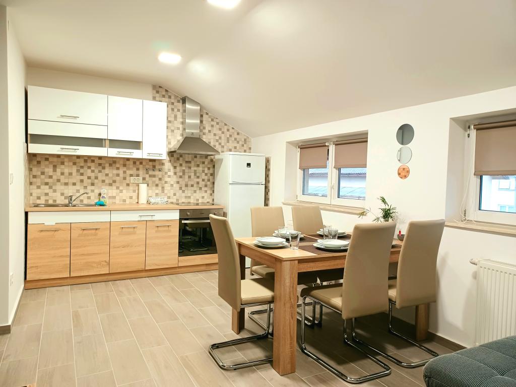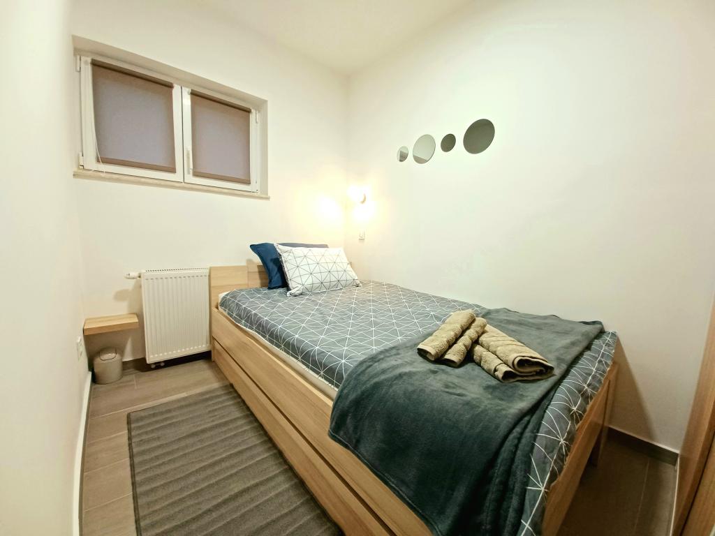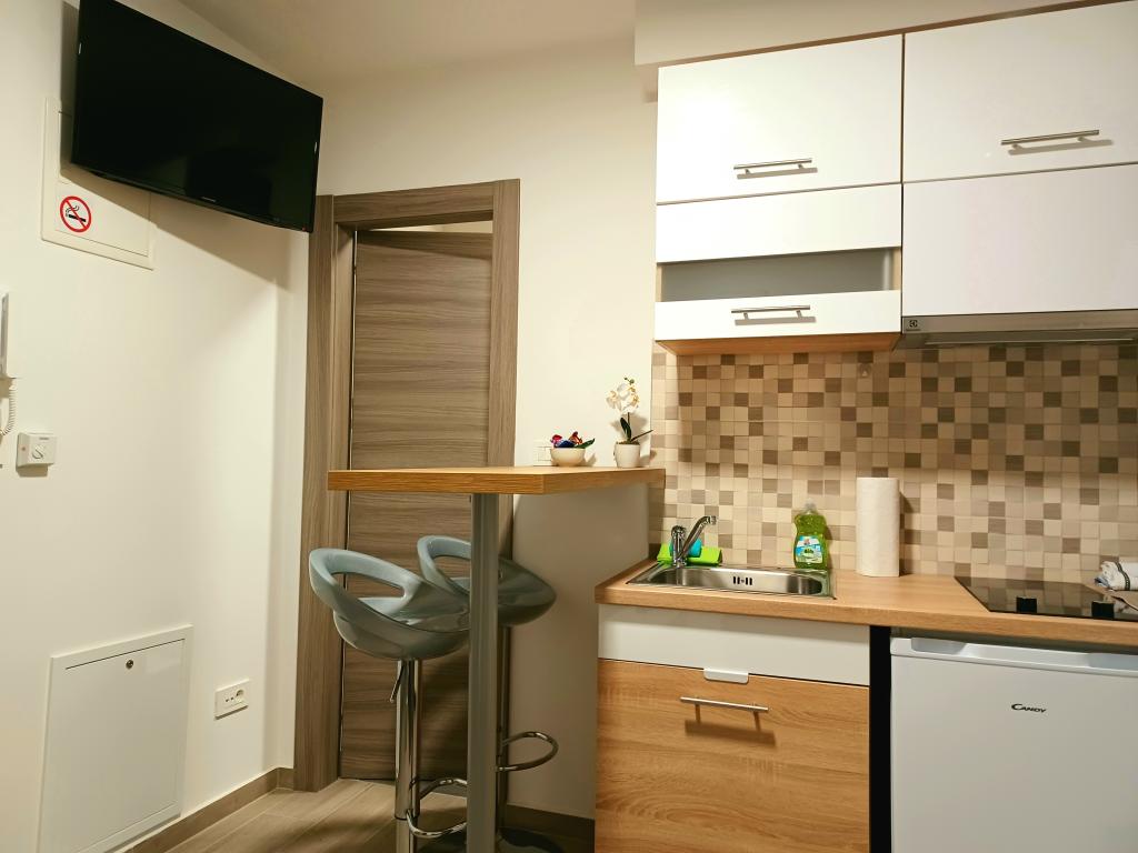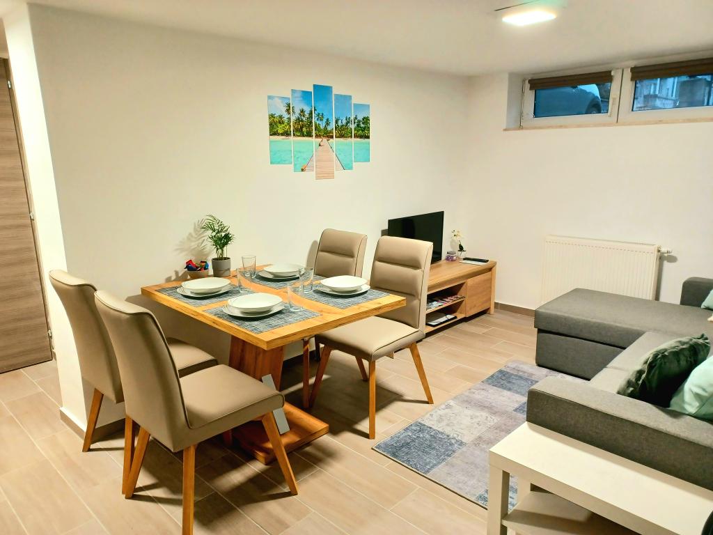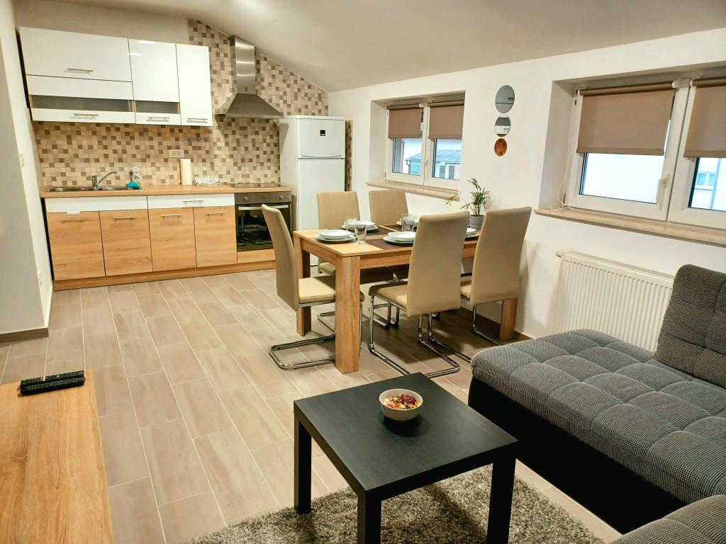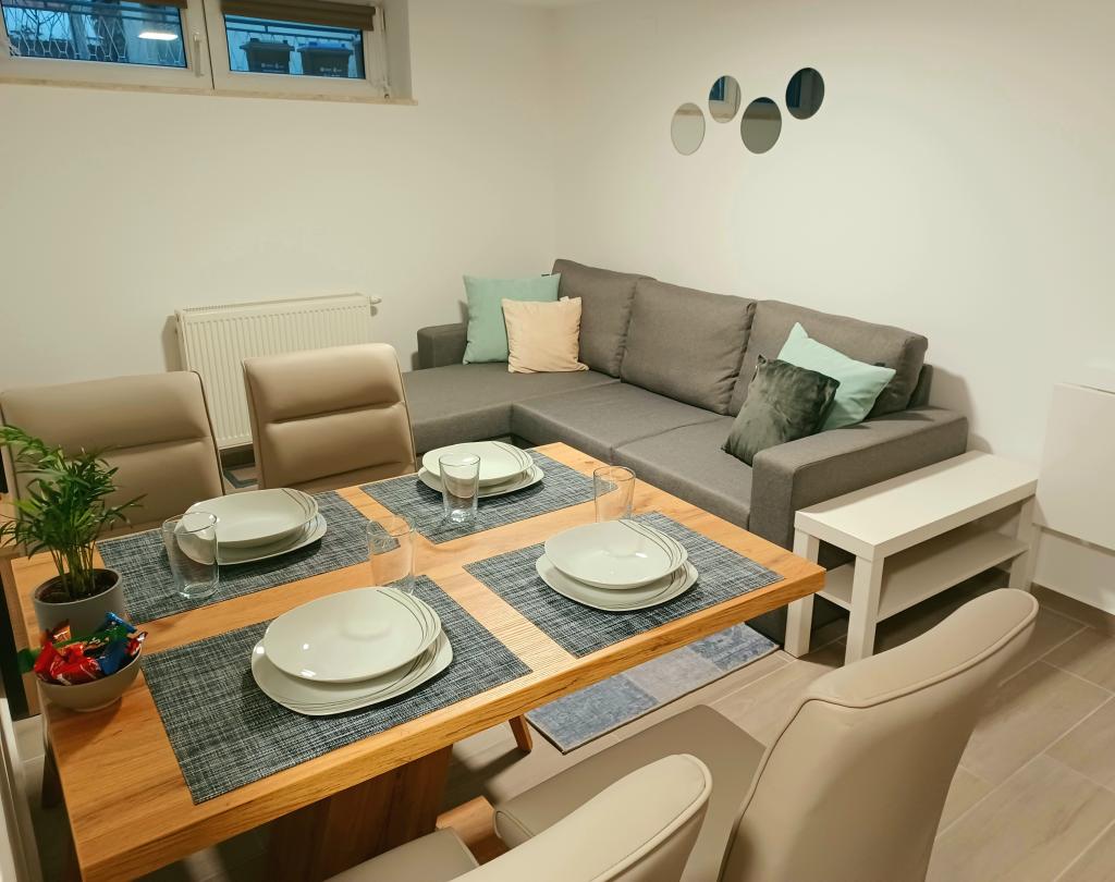 Zařízení se skládá ze 6 ubytovacích jednotek s kapacitou až 11 osob. Každá ubytovací jednotka má vlastní kuchyň a koupelnu. Apartmány se nacházejí v klidné obci, ve slepé ulici s pěším východem na hlavní silnici (50 m). Vynikající dopravní spojení, v blízkosti restaurací (300 m) a obchodů (100 m). Vzdálenost od centra města přibližně 20 minut autem, na kole nebo veřejnou dopravou. Vynikající poloha apartmánů pro hosty, kteří přijíždějí ze zdravotních důvodů díky blízkosti několika nemocnic a klinik.