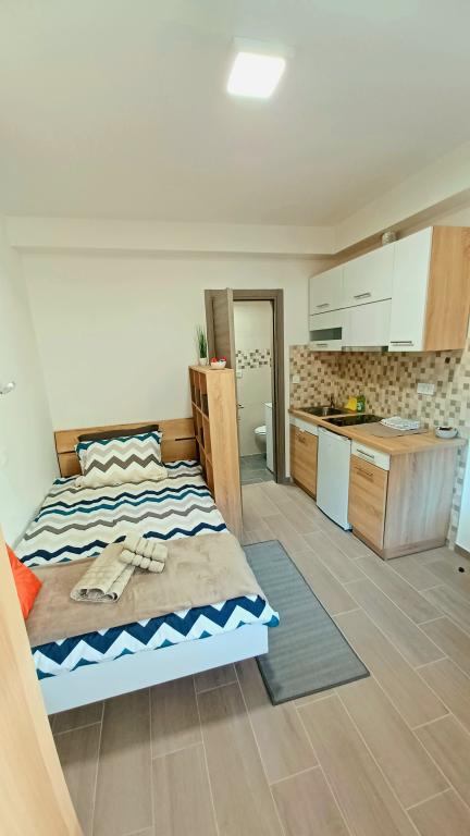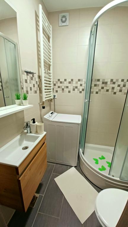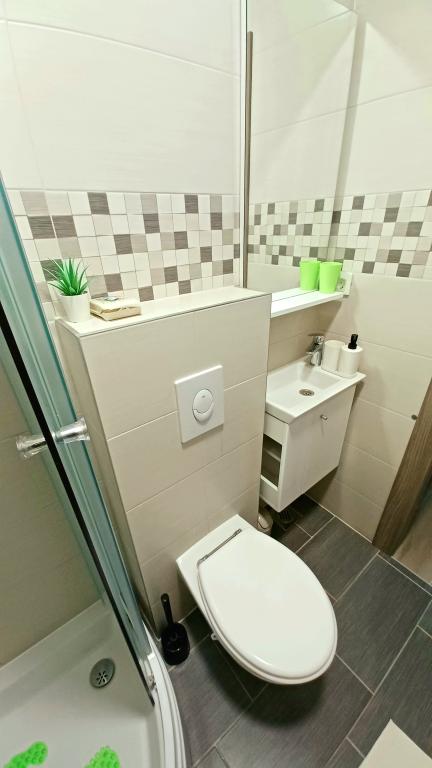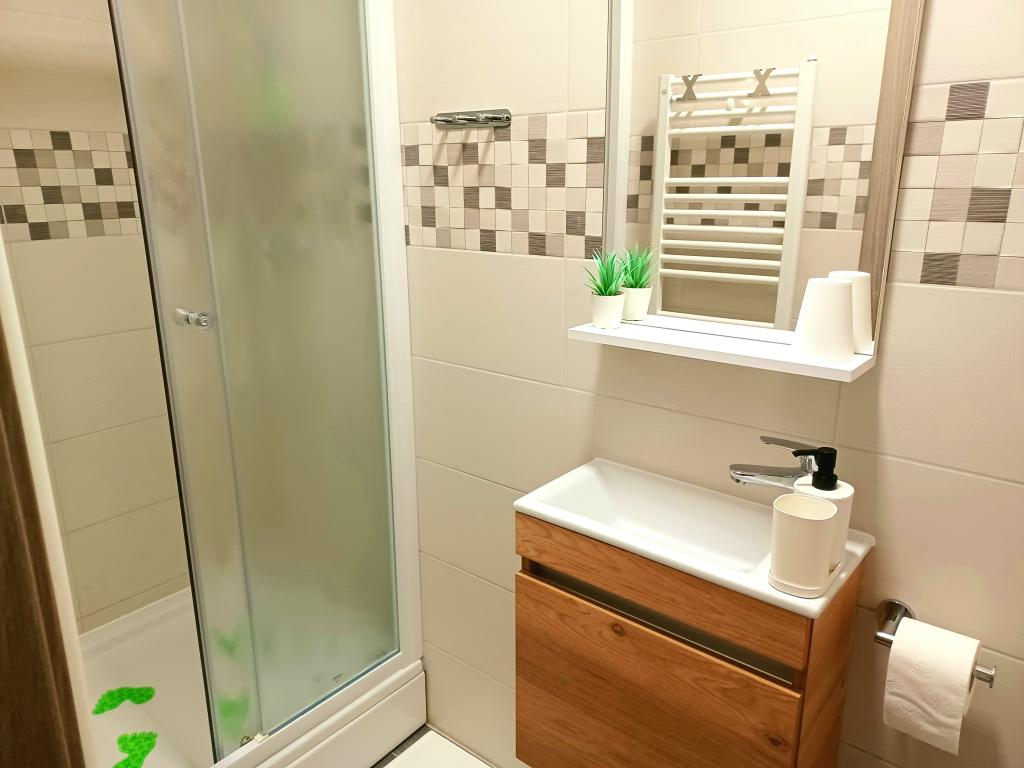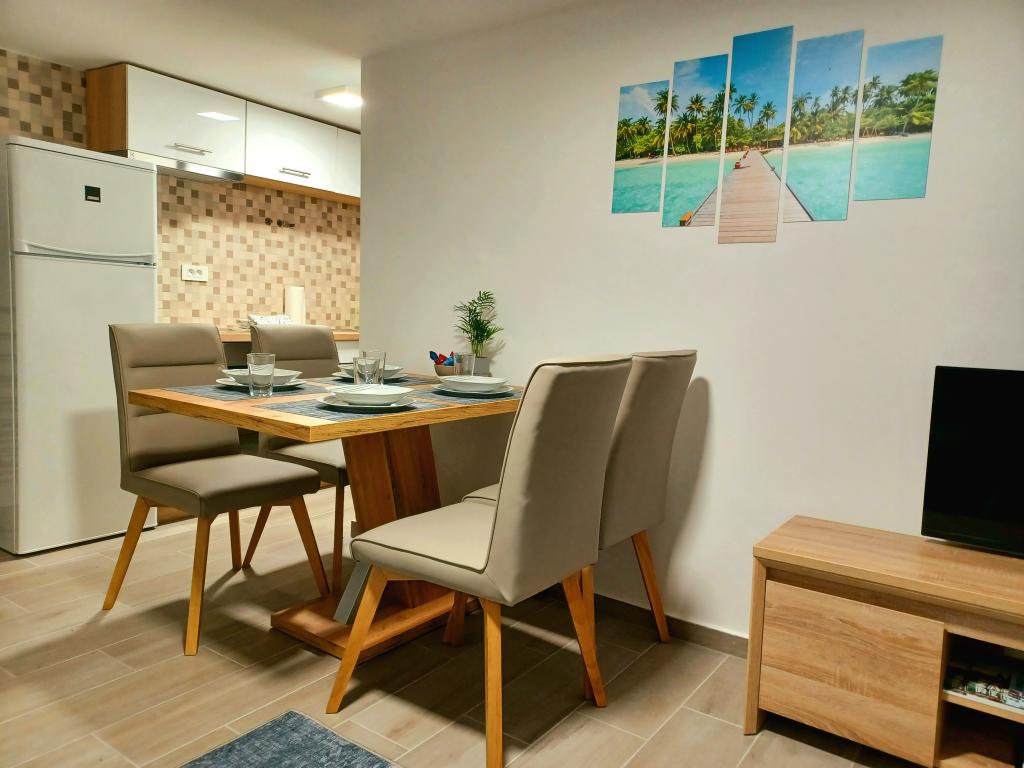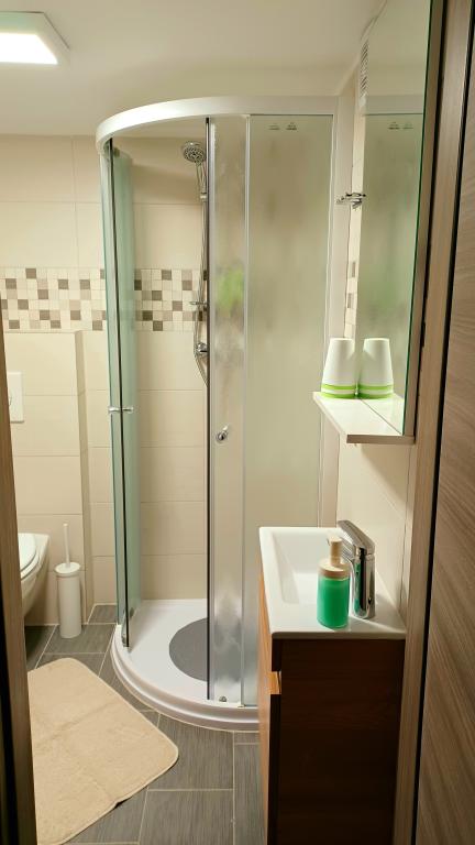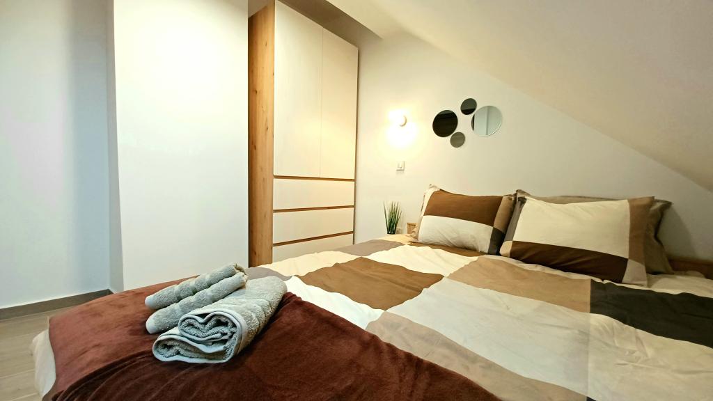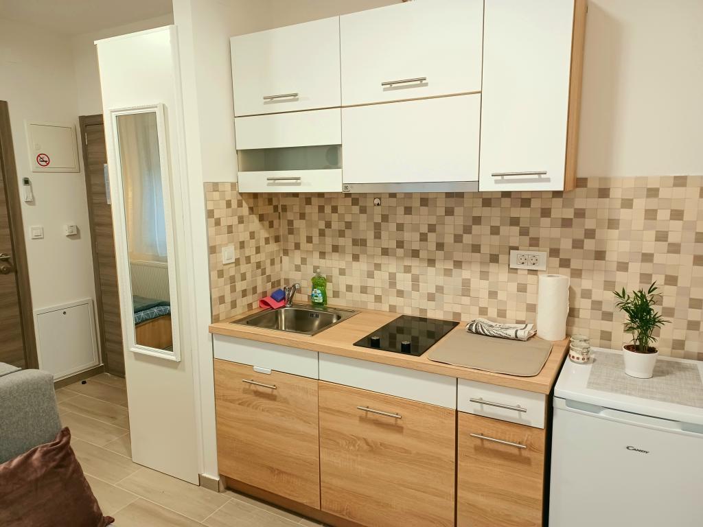 Zařízení se skládá ze 6 ubytovacích jednotek s kapacitou až 11 osob. Každá ubytovací jednotka má vlastní kuchyň a koupelnu. Apartmány se nacházejí v klidné obci, ve slepé ulici s pěším východem na hlavní silnici (50 m). Vynikající dopravní spojení, v blízkosti restaurací (300 m) a obchodů (100 m). Vzdálenost od centra města přibližně 20 minut autem, na kole nebo veřejnou dopravou. Vynikající poloha apartmánů pro hosty, kteří přijíždějí ze zdravotních důvodů díky blízkosti několika nemocnic a klinik.