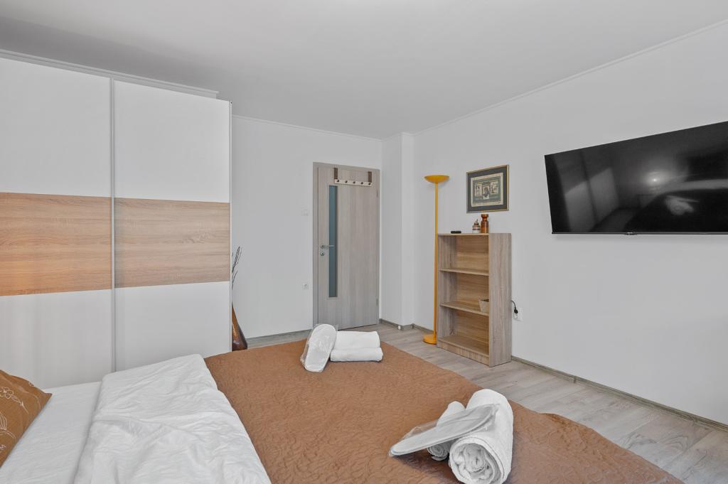 Tento moderní byt je skutečný klenot. Nachází se v klidném prostředí a je ideální pro obchodní pobyty nebo odpočinkovou dovolenou. Skládá se ze 2 mimořádně prostorných pokojů, vybavené kuchyně, koupelny se sprchovým koutem a samostatného WC. Domácí mazlíčci nejsou povoleni – jejich srst nás miluje tak moc, že se jí dlouho nemůžeme zbavit! Oba pokoje mají king size postele, rychlou WIFI, TV, psací stůl, šatní skříň a klimatizaci. Pokoj 1 má vlastní balkon pro ranní kávu nebo večerní odpočinek. Kuchyň je plně vybavená: myčka, mikrovlnná trouba, varná konvice, toustovač a neomezená konzumace čaje a kávy. V koupelně je sprchový kout, vysoušeč vlasů a pračka (u pobytů na 4 a více nocí). Flexibilní možnosti pronájmu pro každý rozpočet: můžete si pronajmout jeden pokoj (sdílet společné prostory s ostatními hosty) nebo celý apartmán pro sebe. Dokonalá kombinace pohodlí a praktičnosti! Přímo před i za budovou se nachází velké městské parkoviště. Cena je 0,82 €/1h nebo 8 €/24h. S trochou zručnosti zaparkujete zdarma.