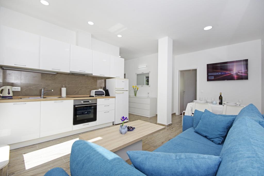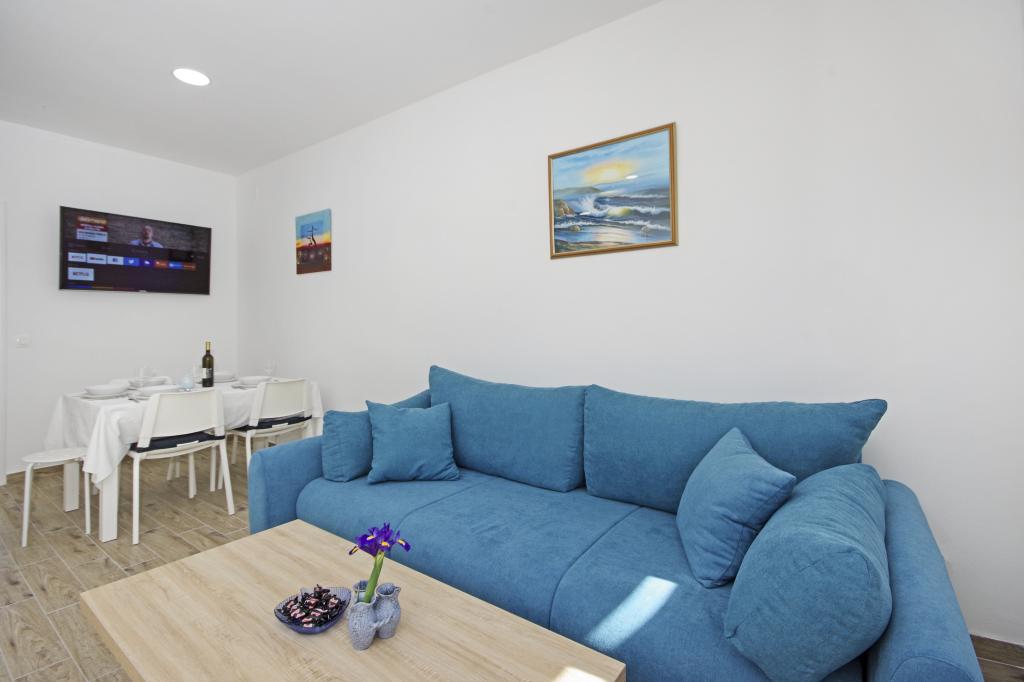 Apartmán se dvěma ložnicemi a dvěma terasami - jak je popsáno. Čisté, pohodlné, pěkně zařízené a vybavené vším, co potřebujete k dobrému odpočinku. Zajištěné parkovací místo. Dům se nachází v klidné oblasti, přesto v blízkosti pláže, obchodů a restaurací. Gordana a její rodina jsou skvělí a ochotní hostitelé, kteří se ujistili, že nám nic nechybí. Děkuji především za fíky a sladkosti. s pozdravem Monika s rodinou