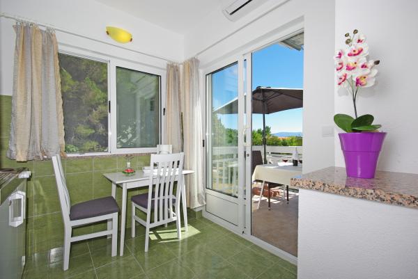 Skvělé místo pro skvělou dovolenou. Majitel - Gordana je úžasný, mimořádně vstřícný a okouzlující člověk, na který se můžete vždy spolehnout. Apartmány jsou velmi čisté, dobře vybavené potřebnými předměty. Další výhodou bytu je velká terasa s výhledem na moře a parkovací místo v zahradě za domem. Dům se nachází v nejlepší možné lokalitě - velmi blízko pláže a obchodů, ale zároveň mimo vyvedenou stopu, která vám umožní relaxovat v tichu. Stručně řečeno, nejlepší místo pro skvělou dovolenou!