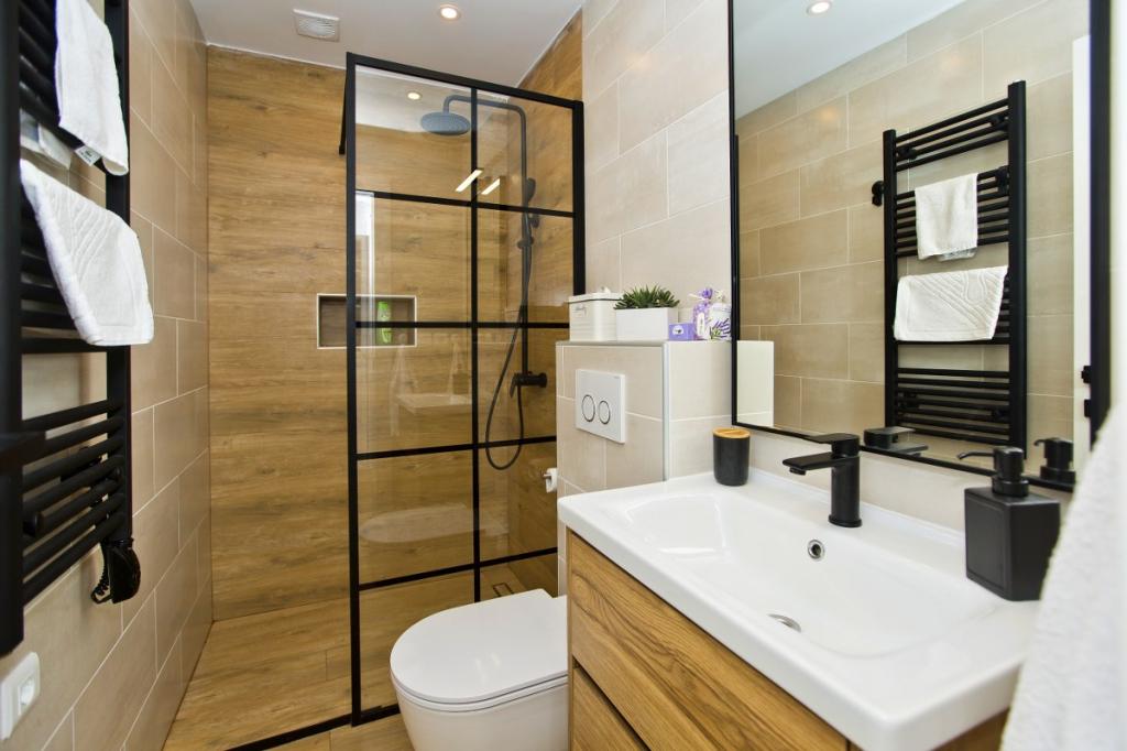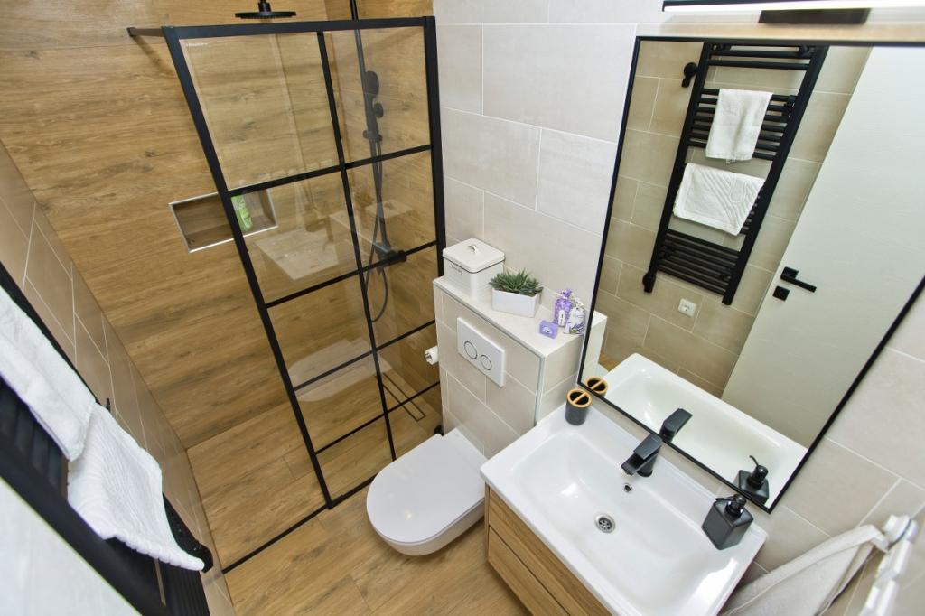 Dům se skládá z bytu o rozloze 30 m2 a zahrady o rozloze 20 m2. Byt se skládá z ložnice, koupelny, obývacího pokoje s kuchyní a malé úložné místnosti. Z pokoje je krásný výhled a je v něm manželská postel, pod kterou se nachází úložný box na zavazadla o rozměrech 160x200 cm. K dispozici je také velká šatní skříň s posuvnými dveřmi, dva noční stolky s lampičkami a klimatizace. Koupelna je vybavena sprchovým koutem, radiátorem, ventilátorem, umyvadlem a toaletou. Obývací pokoj s oknem a kuchyň jsou propojené. Obývací pokoj má klimatizaci, pohovku, TV, kuchyňský stůl se židlemi. Kuchyň se skládá z trouby, varné desky, myčky nádobí, lednice, mikrovlnné trouby, ohřívače vody a toustovače. V malé úložné místnosti se nachází pračka, bojler a botník. Dvůr je určen k posezení a relaxaci a je zde lehátko, slunečník, židle a zahradní sada. Jedná se o byt, který se nachází v prvním patře rodinného domu a před ním je velká zahrada.