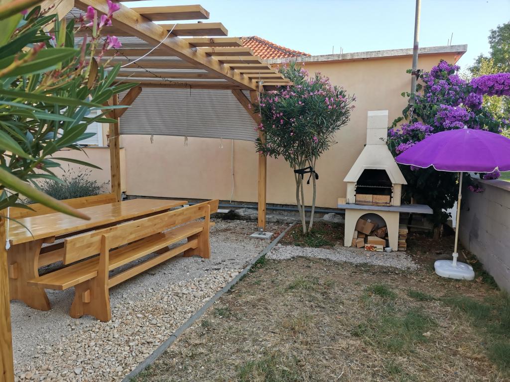Ideální místo pro každoroční dovolenou s pocitem domova. Byt je prostorný, čistý a do posledního detailu vyzdobený všemi potřebnými věcmi v kuchyni: kořením, olejem, octem, káva, cukr, saponát, kuchyňské utěrky, dostatek nádobí všeho druhu, dokonce i tyčový mixér. Velká koupelna s pračkou, dostatkem toaletního papíru a fénem. Hostitelé jsou úžasní, přátelští lidé, kteří poskytují nádherný krytý altán s grilem. Pláž je vzdálená 15 minut chůze, parkoviště pro auto a Petrčani a krásná Pinija jen 2 km od apartmánu. Nedaleko je dětské hřiště, v bytě hračky a obrázkové knížky. Ideální pro rodinnou dovolenou bez hluku a s pocitem domova!