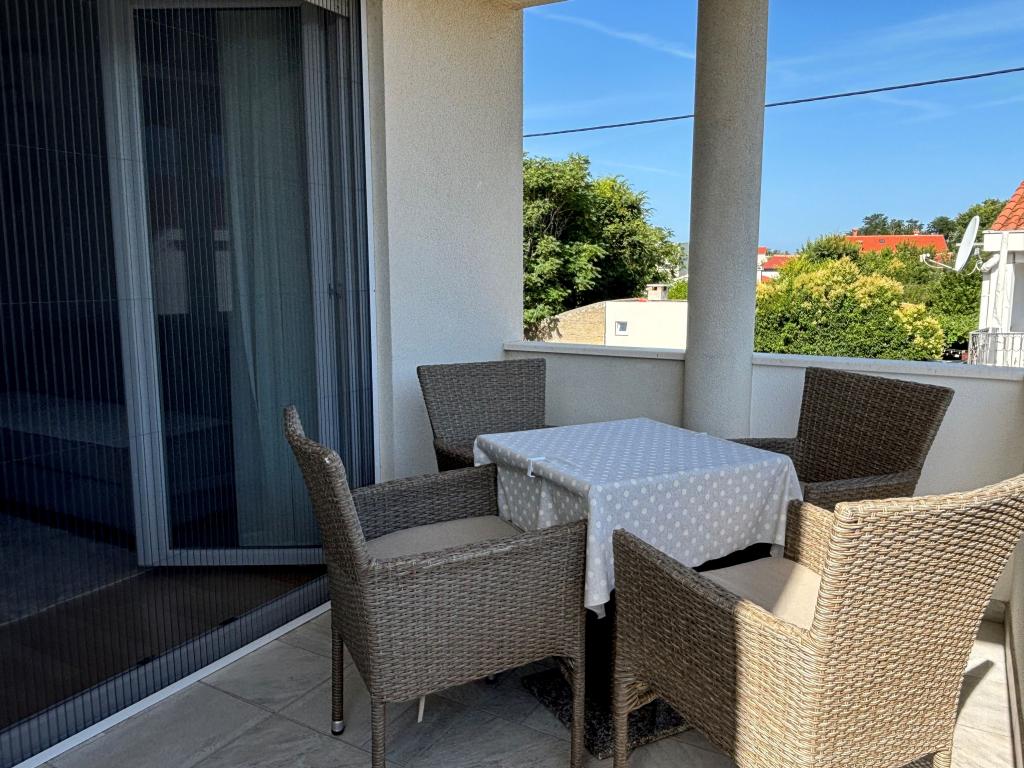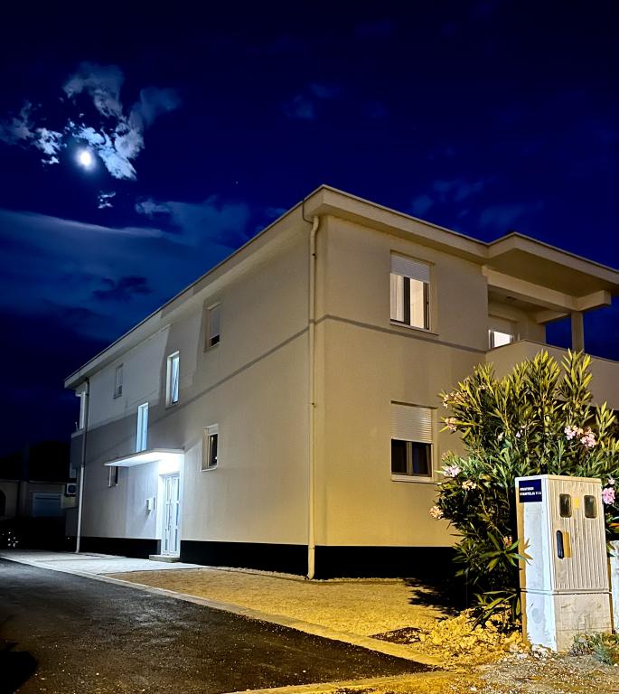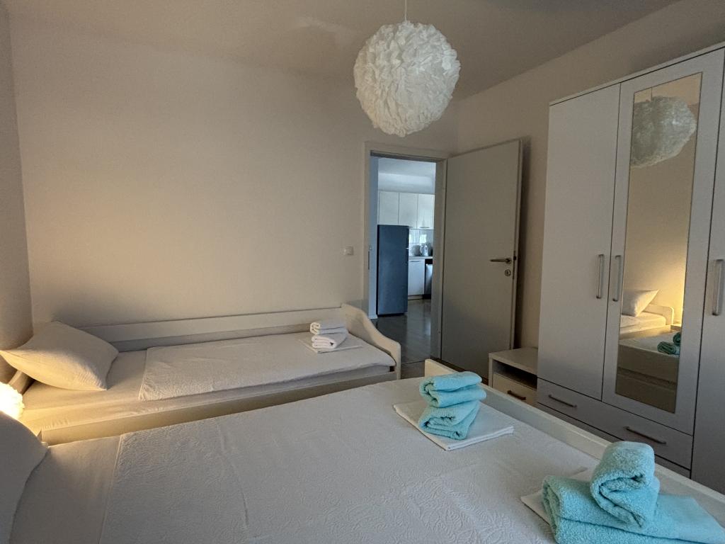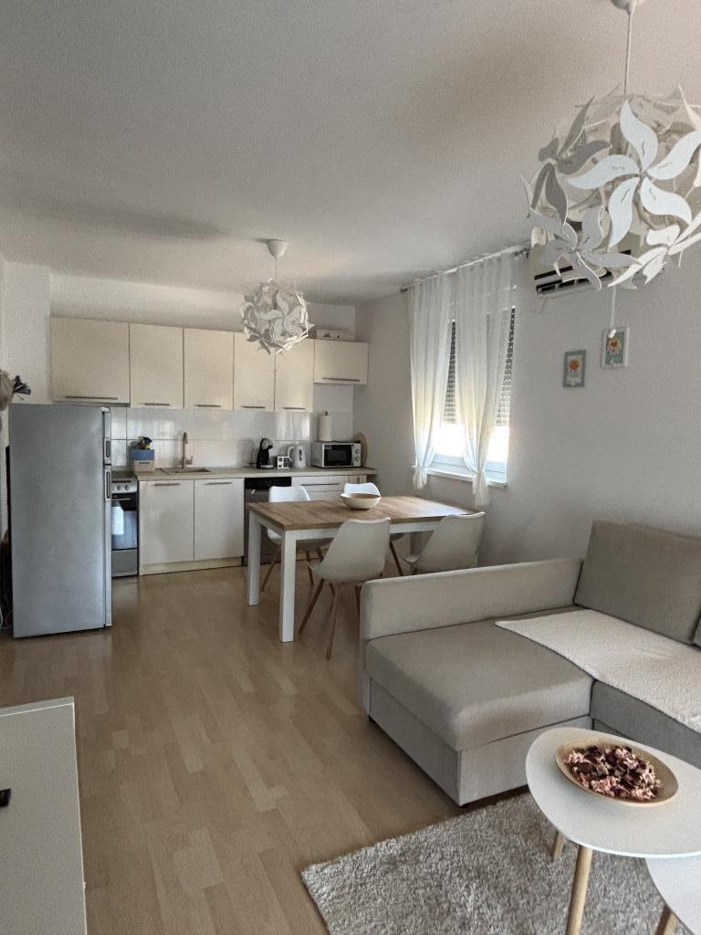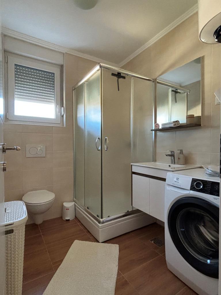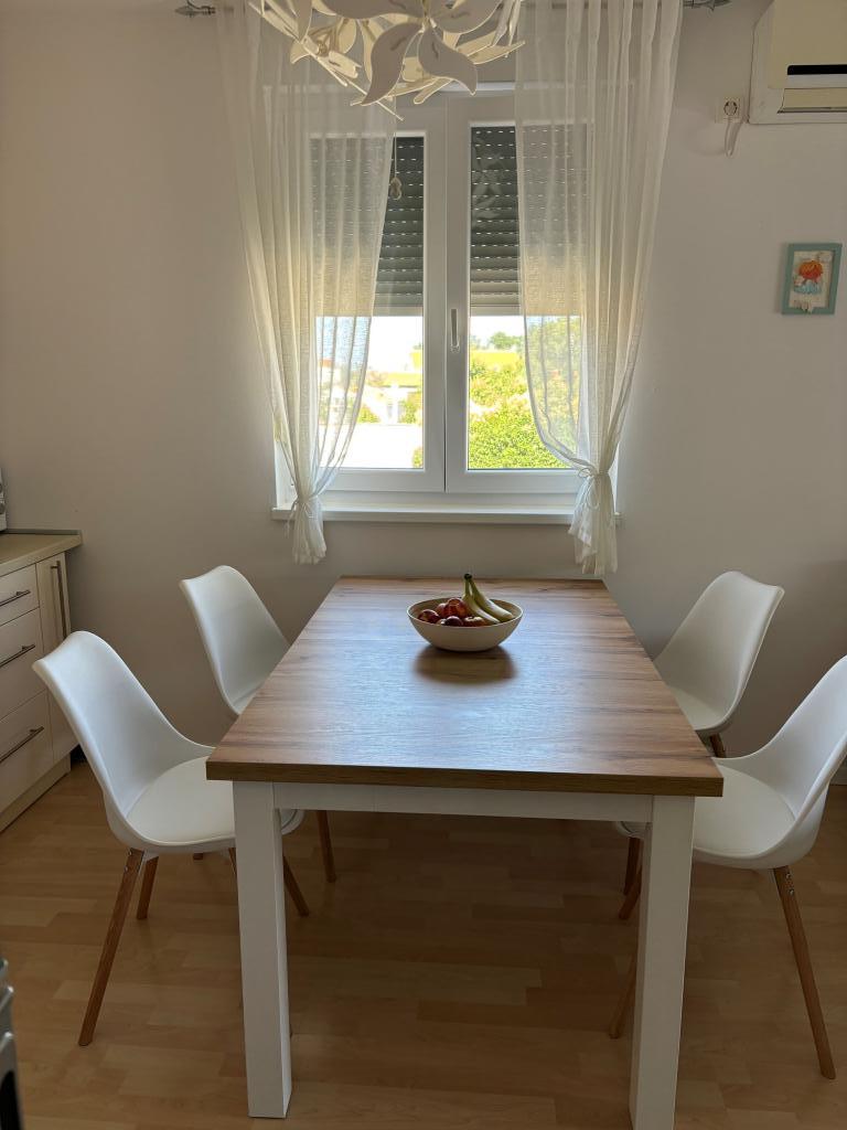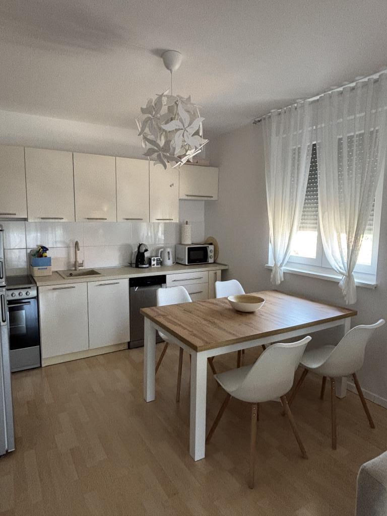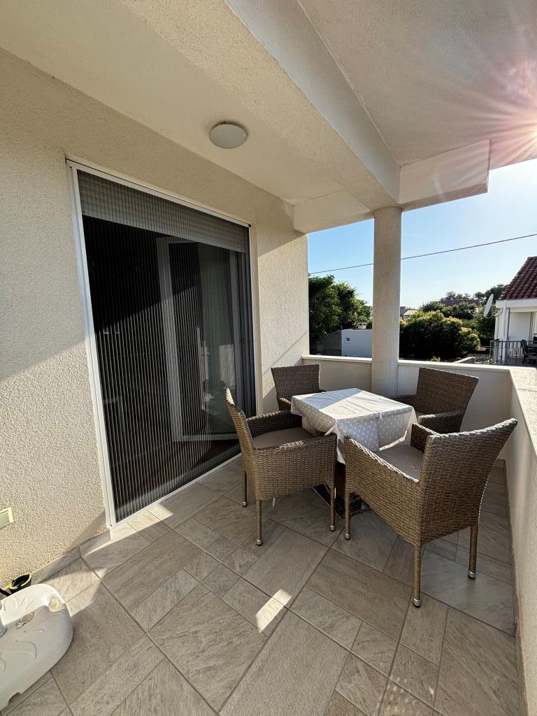 Rodinný apartmán se nachází v rodinném domě se 4 ubytovacími jednotkami, v klidné části města. Nachází se v 1. patře domu a byl zrekonstruován na jaře roku 2022. Je v bezprostřední blízkosti turistické kanceláře Zaton, obchodů, dětského hřiště, taverny a pekárny. Písečné pláže, které jsou vynikající volbou pro rodiny s dětmi, jsou vzdáleny 15 minut chůze nebo 1 minutu jízdy autem. Apartmán se skládá z: ložnice s manželskou postelí a přistýlkou, koupelny se sprchovým koutem, kuchyně, obývacího pokoje a venkovní kryté terasy. Kromě výše uvedeného vybavení mají hosté k dispozici také Smart TV, mikrovlnnou troubu, toustovač, fén, pračku a možnost venkovního grilu. Parkování je zajištěno ve dvoře budovy. Apartmán je vynikající volbou pro rodinu s jedním nebo dvěma dětmi. Zveřejněné fotografie zobrazují skutečný stav a pokud si myslíte, že něco není zobrazeno a je pro vás důležité, neváhejte nás kontaktovat, abychom vám mohli poskytnout doplňující informace nebo fotografie.