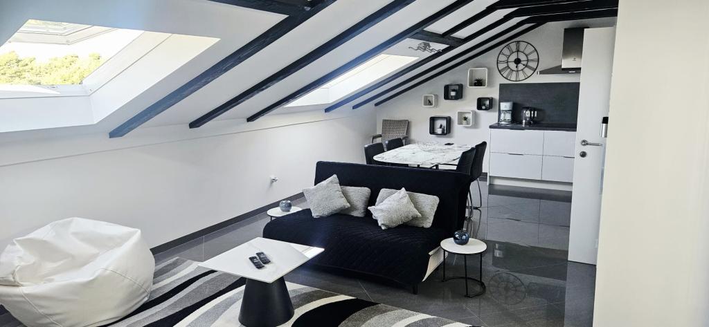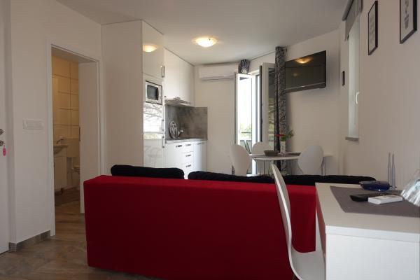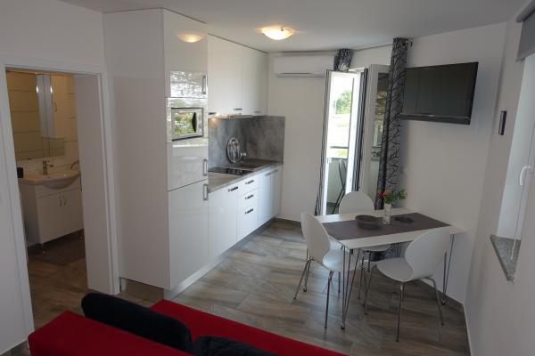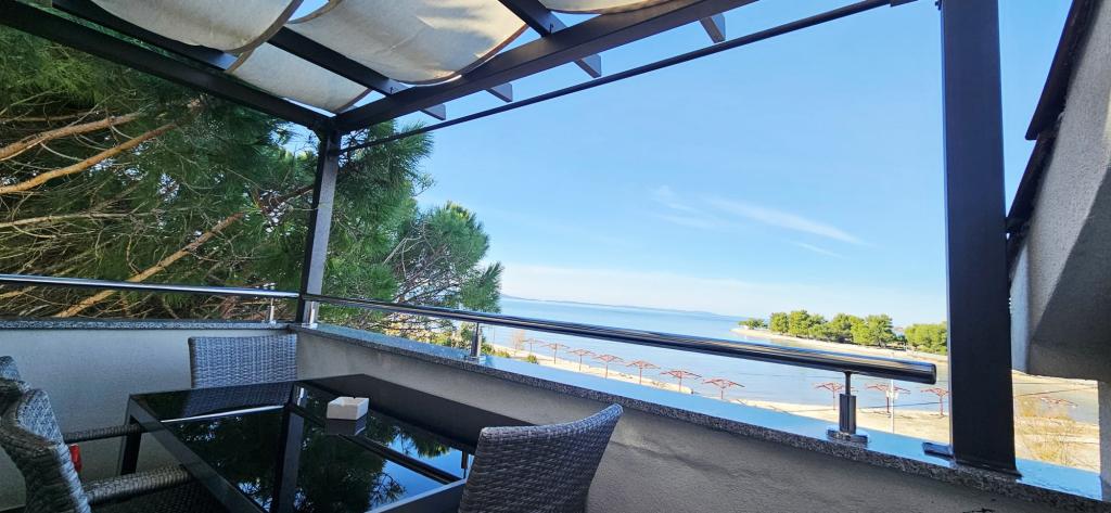 Objekty se nacházejí přímo u moře, přímo na pláži v Zatonu. Domy s apartmány se nacházejí vedle sebe a všechny apartmány mají výhled na moře. Wi-Fi, parkování a klimatizace jsou zahrnuty v ceně.