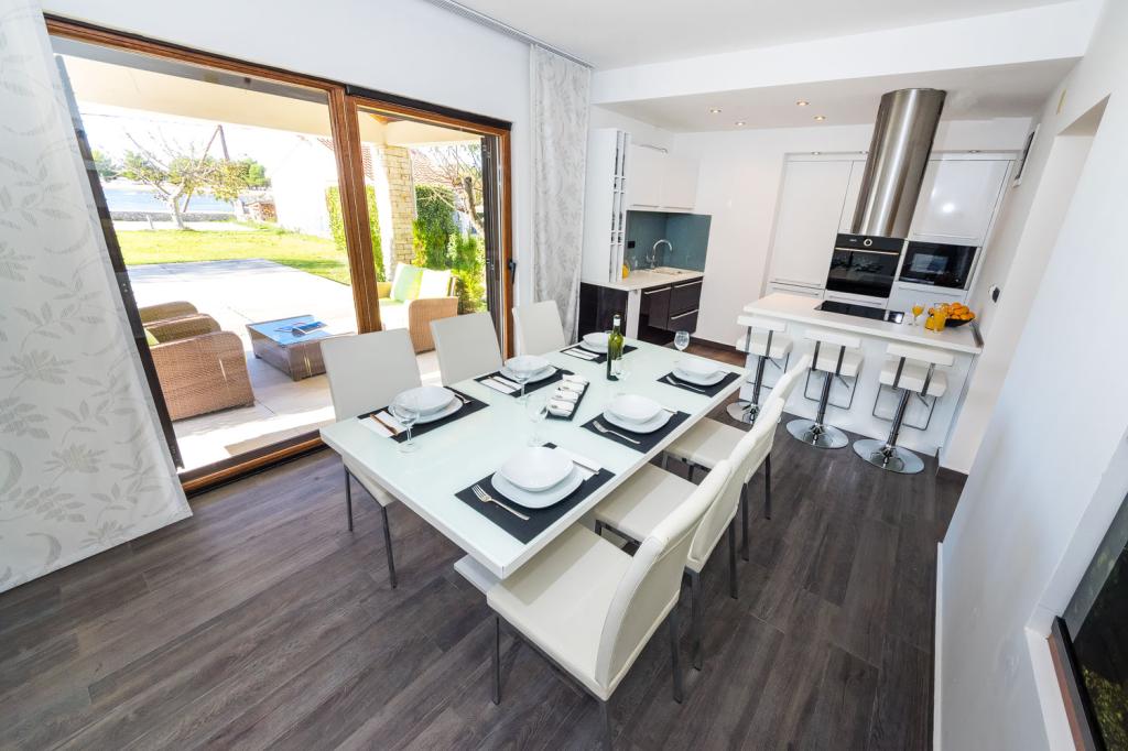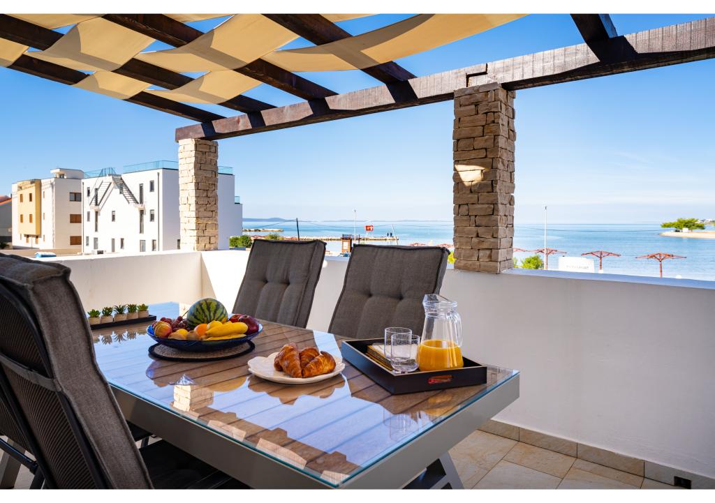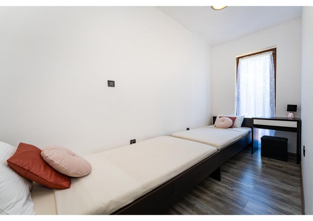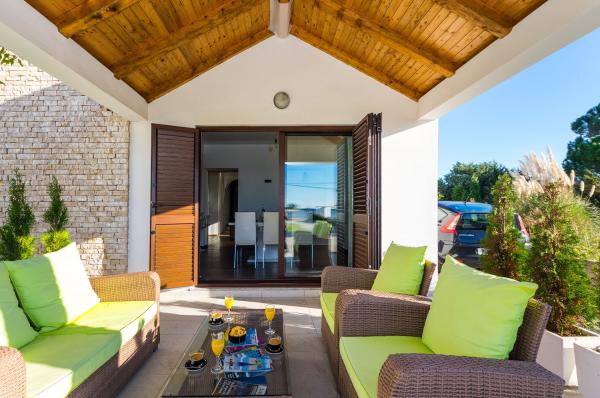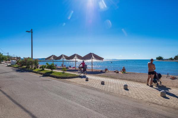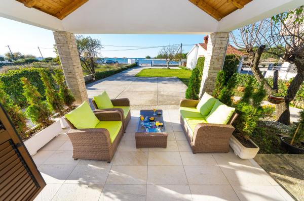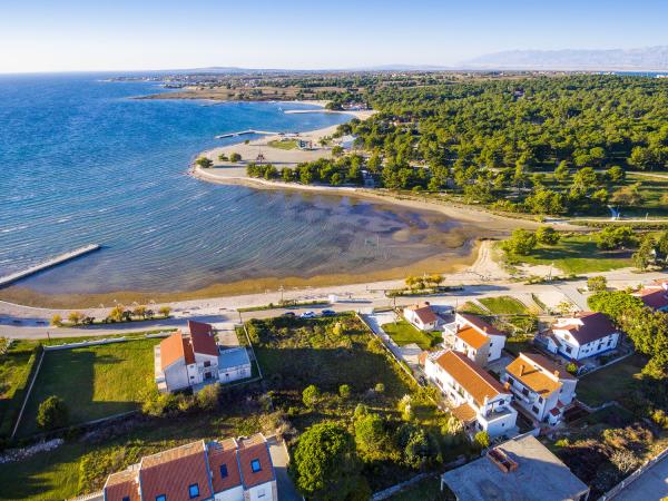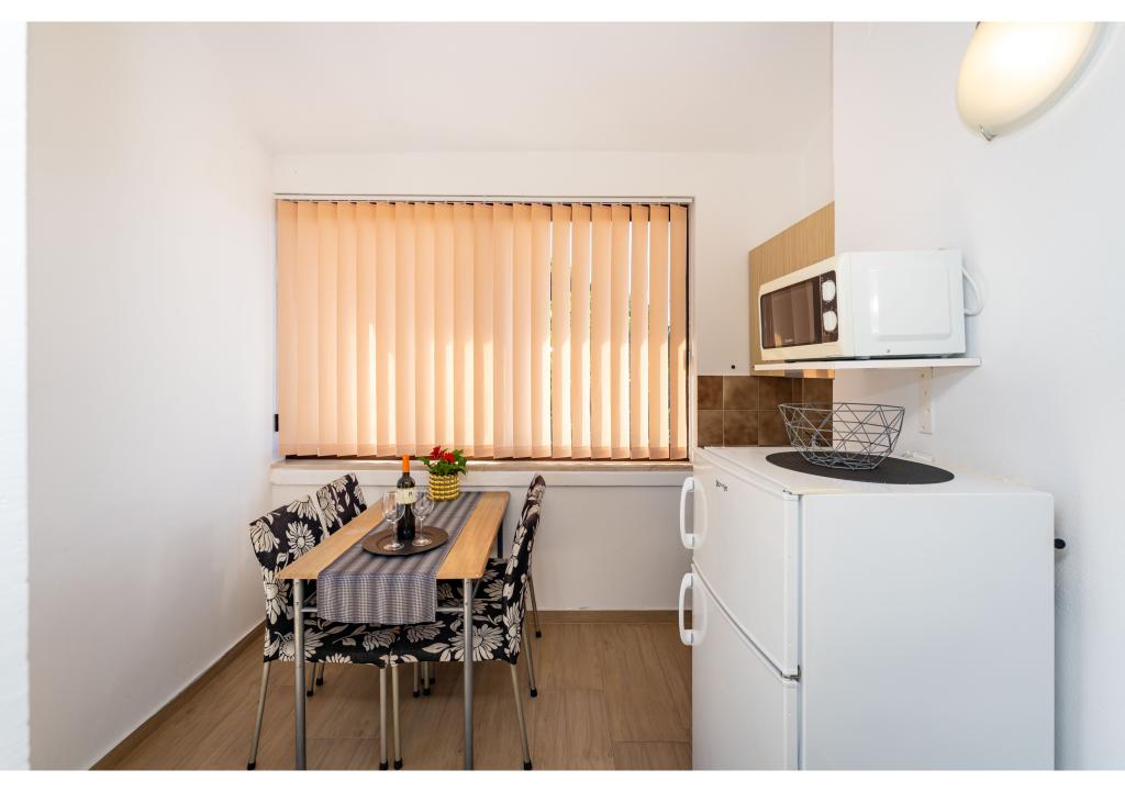 Apartmány první řada k moři. Terasa s výhledem na moře. Zátoka je písčitá a mělká. Apartmány se nacházejí v blízkosti turistického centra Zaton a jsou vybaveny klimatizací, internetem, satelitní TV, parkovištěm, grilem atd.