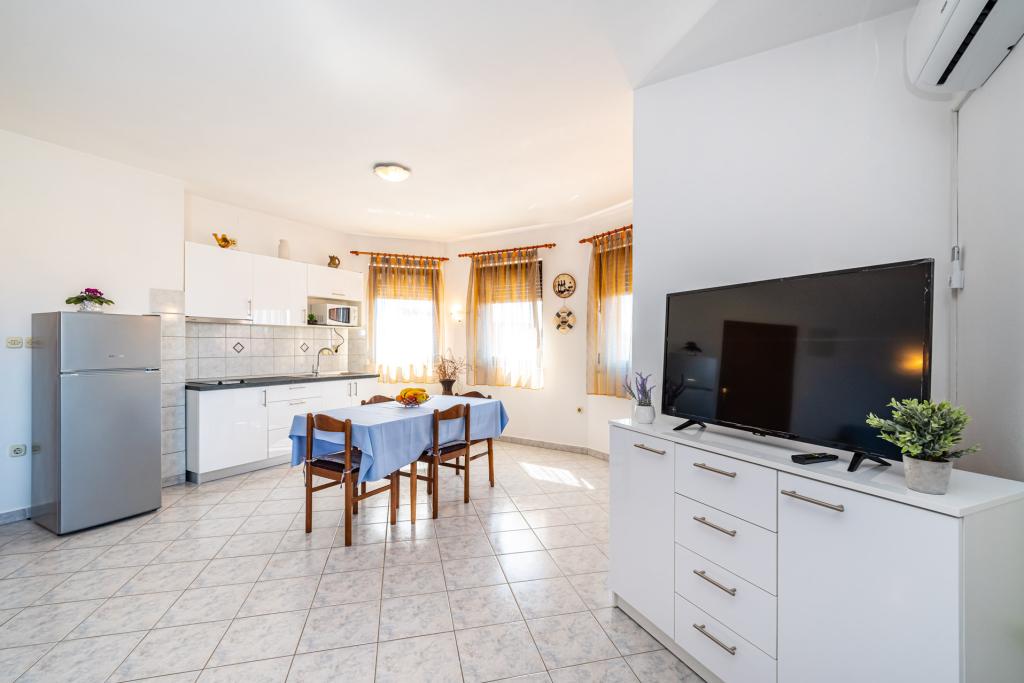 Doporučení pro paní Mirjana a její ubytování. S manželem jsme strávili 7 úžasných dní. Paní je nevtíravá, velmi jemná a vstřícná, opravdová hostitelka. Ubytování v plně vybaveném studiu bylo výborné, vše čisté a upravené. Paní domácí nás pohostila svými domácími rajčaty a okurkami (zdá se, že litovala našeho osudu, protože v našem domě, co nezničili vetřelci a slunce, zničil nedávný led). Dostatek místa pro parkování. Pěkně zařízený dvůr. Nejbližší pláž je doslova pár kroků od domu. Pláž je upravená, vnější část je betonová a v moři je písek. K dispozici jsou také 2 sprchy s teplou vodou. Obchody, restaurace, kostel... vše je blízko. Auto jsme vůbec nepotřebovali. Zapálili jsme ho, jen když jsme šli na koncert do Vir and Aqua parku v Biogradu.