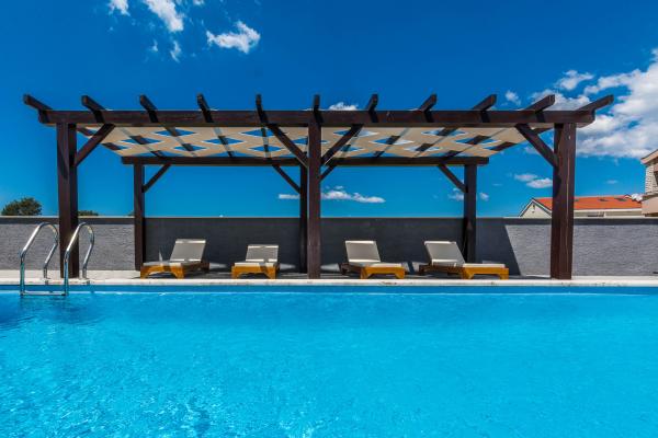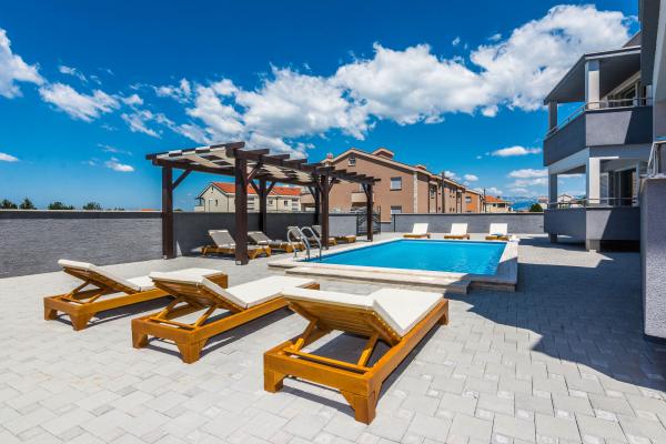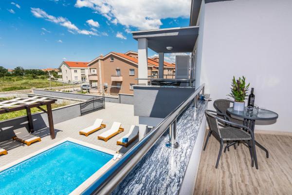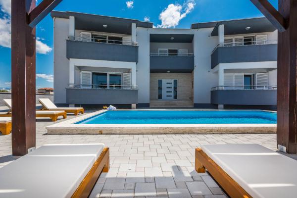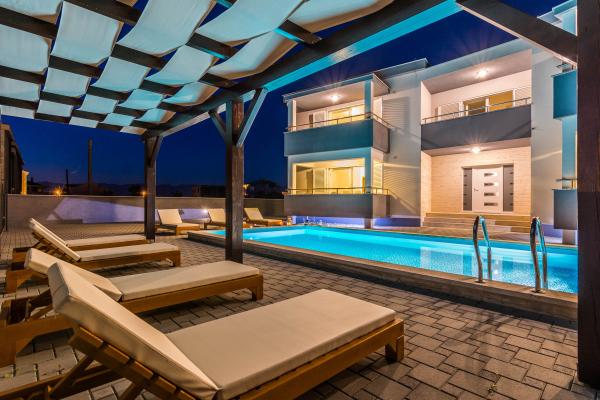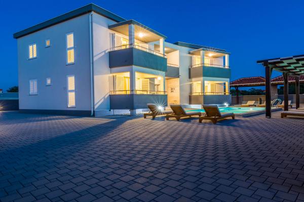Apartmány Villa More - dům se čtyřmi apartmány (max. 4 osoby) a dvěma pokoji (každý pokoj max. 2 osoby) v Zatonu, v bezprostřední blízkosti turistického střediska Zaton. Pokoj Val (přízemí) nemá balkon, pokoj Sunce (1. patro - má balkon), vstup na balkon je přes chodbu, nikoli přímo z pokoje. Zařízení se nachází 5 minut chůze od turistického střediska Zaton a pláže. Vila More má bazén, vířivku a krb s grilem. K dispozici je také pračka (ke sdílenému užívání). Nabízíme také bezplatná kola a bezplatné parkování vedle domu.
