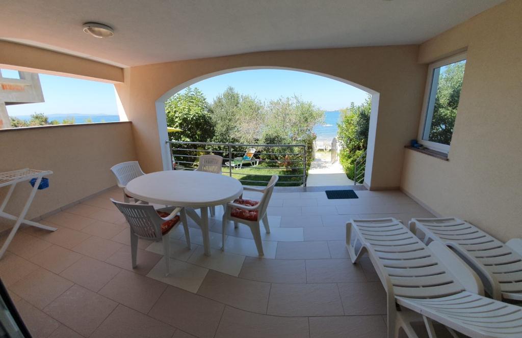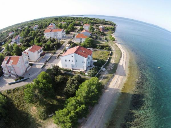 Krásně zařízený apartmán, prostorný, uklizený, čistý, perfektně vybavená kuchyň se vším nádobím, dvě lednice s mrazákem, moskytiéry na oknech a balkonových dveřích, prostorná terasa s novým nábytkem a houpačkou. Vše jako v popisu apartmánu. Zelené okolí domu, plážová lehátka, pláž je přímo před domem, nedaleko je také písečná pláž pro malé děti, krásné západy slunce. Pohostinní majitelé. Klidná oblast Zatonu. Doporučuji!