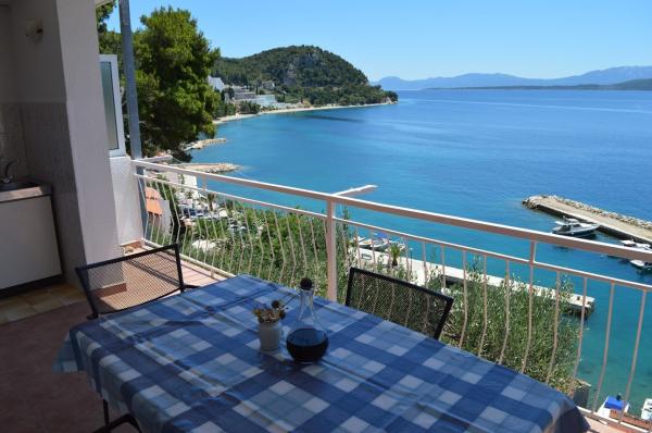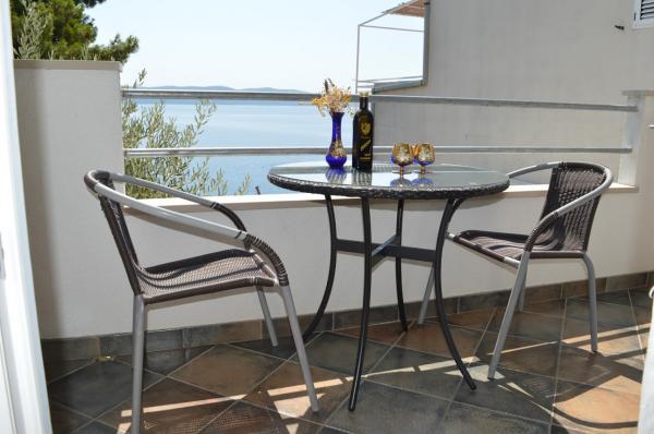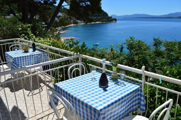 Moderně vybavené turistické apartmány s krásným výhledem na moře, obklopené různými středomořskými rostlinami, 50 metrů nad mořem, 3 minuty chůze od moře a 5 minut od pláže.