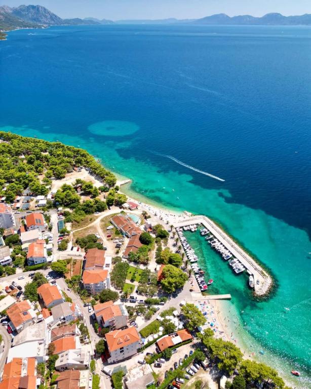 Ubytování je v apartmánovém domě cca. 90 m od moře a pláží. Každý apartmán má vybavenou kuchyň, vlastní koupelnu a balkon nebo terasu, Wi-Fi a klimatizaci. Určitě doporučujeme výlety lodí, kupř. na ostrovy Brač, Hvar, Pelješac nebo Korčula, které nabídne přímo majitel ubytování. Můžete vyrazit třeba na výlety. do Makarské, Dubrovníku, historického Mostaru, oblíbených Bačinjských jezer.