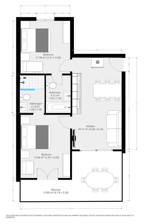 Apartmán pro dvě osoby se dvěma přistýlkami (35 m2)