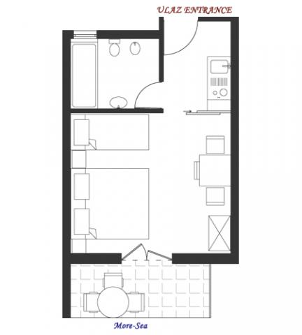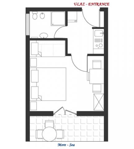 Studio apartmán pro dvě osoby s jednou přistýlkou (26 m2)