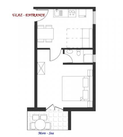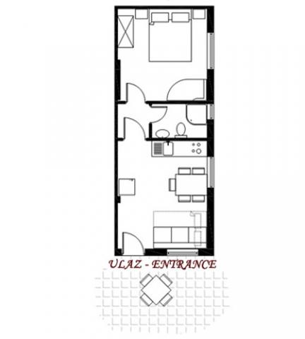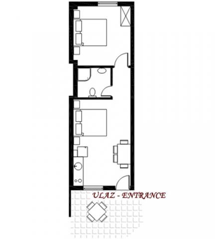 Apartmán pro dvě osoby se dvěma přistýlkami (42 m2)