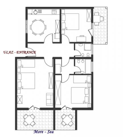 Apartmán pro čtyři osoby se dvěma přistýlkami (65 m2)