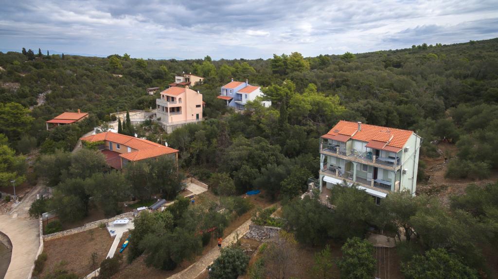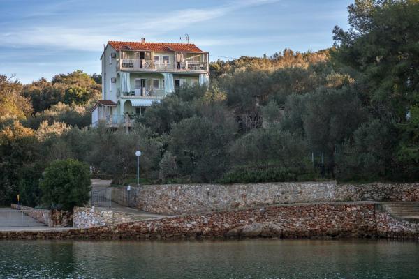 Byt se nachází v první řadě k moři, tedy v bezprostřední blízkosti pláže (cca 50 metrů). Pláž je kombinací písku (vhodné pro seniory a děti) a betonu (vhodné pro dospělé). V bezprostřední blízkosti ubytování je kavárna a do obchodu se dostanete za 5 minut klidnou procházkou podél moře. Prodejna je otevřena od 8:00 do 12:00 a od 17:30 do 20:00, o státních svátcích je zavřeno. K ubytování se lze dostat po silnici podél moře nebo po neasfaltované cestě, tzv. bílá cesta, makadam. Obchod Tommy (potraviny, potřeby pro domácnost), lékárna, bankomaty (bankomat, ERSTE, PRIVREDNA BANKA) a pošta se nachází v Sali, které je vzdálené cca 9 km. Trajektový přístav je vzdálen cca 20 km a nachází se v Brbinji. V Luka jsou tři restaurace, kde se můžete najíst. Bankomaty se nacházejí v následujících lokalitách: Zaglav, Sali a Brbinj.